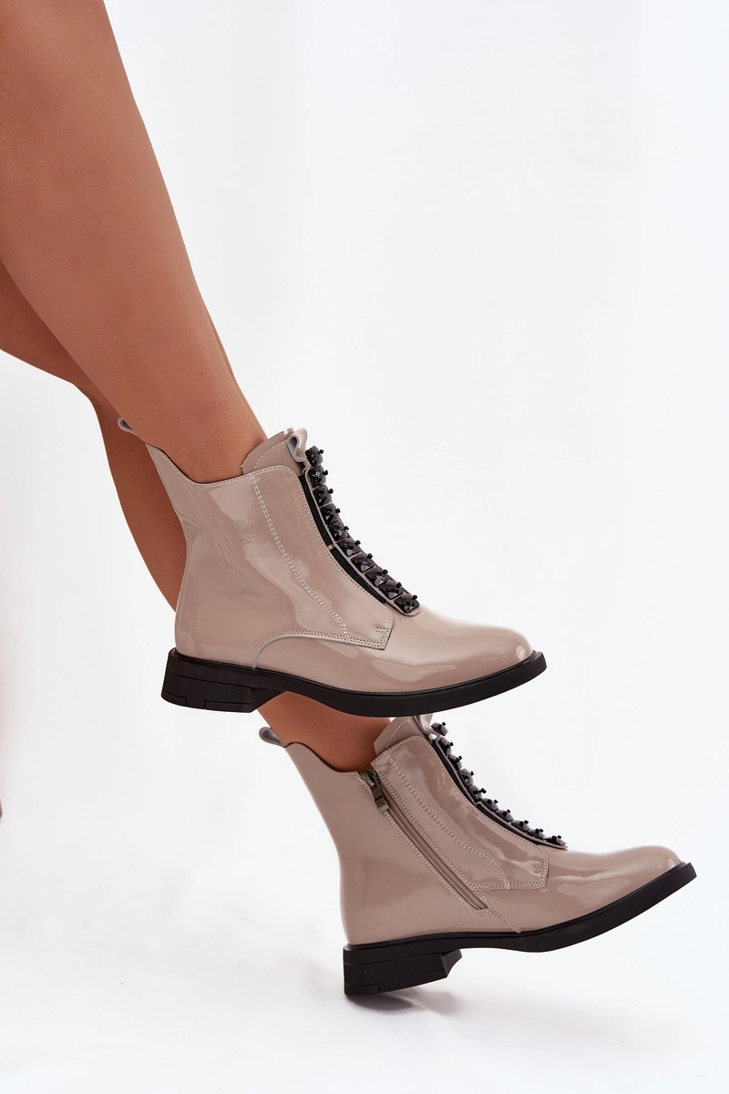 Lakierowane Botki Damskie Z Naturalnej Skóry D&A MR52-108 Beżowe