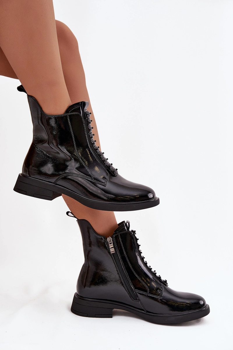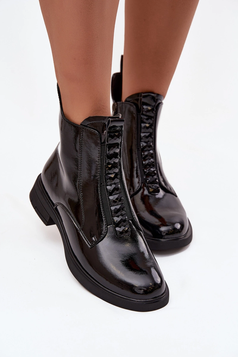Lakierowane Botki Damskie Z Naturalnej Skóry D&A MR52-108 Czarne