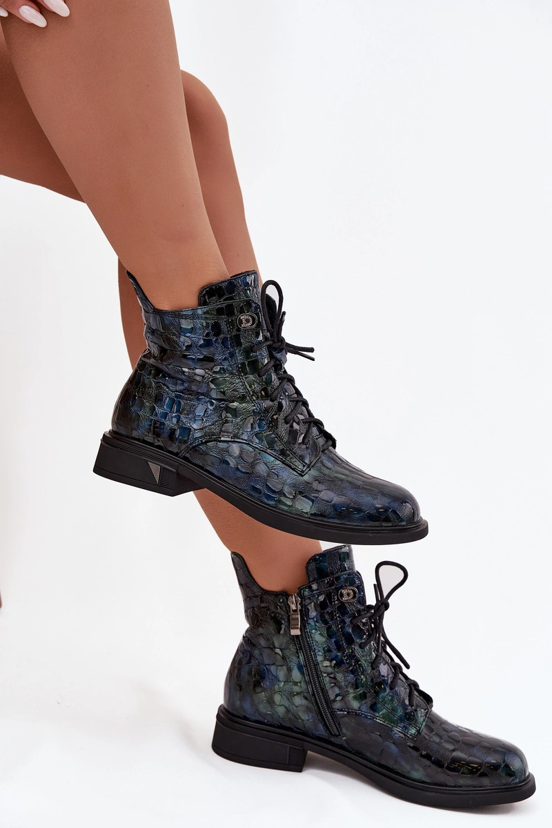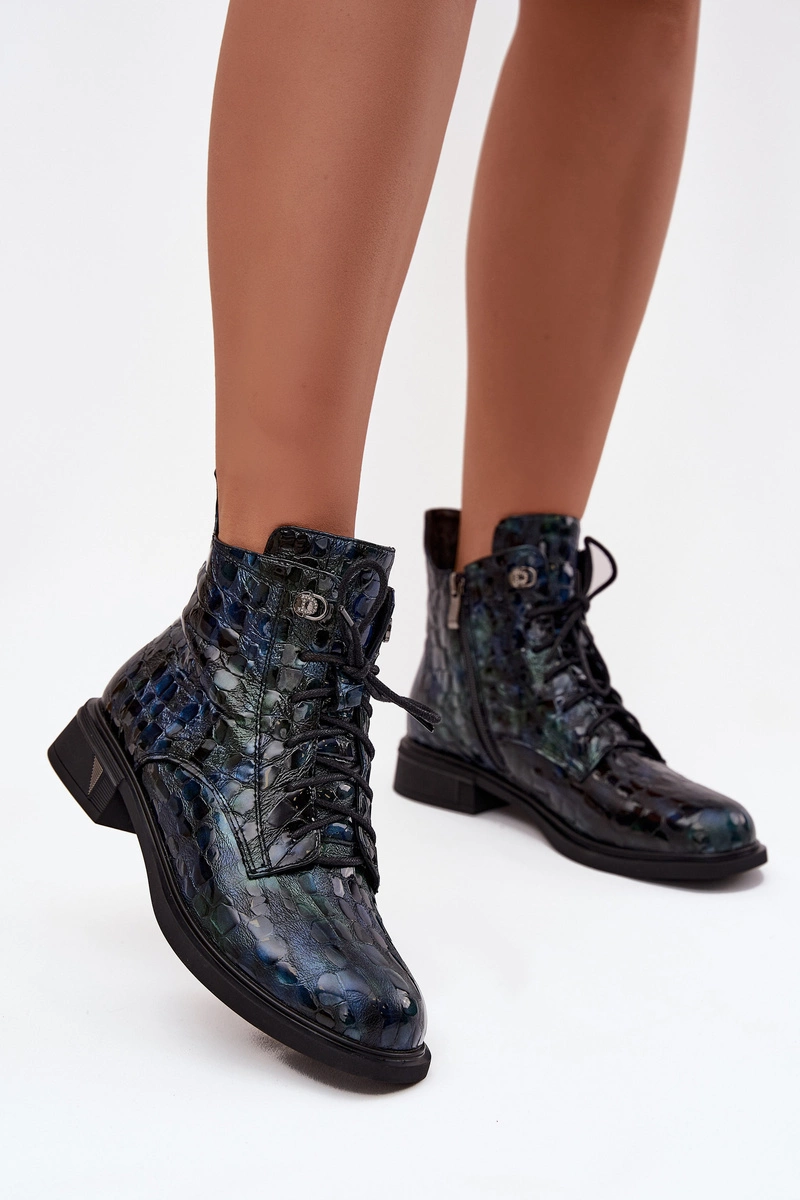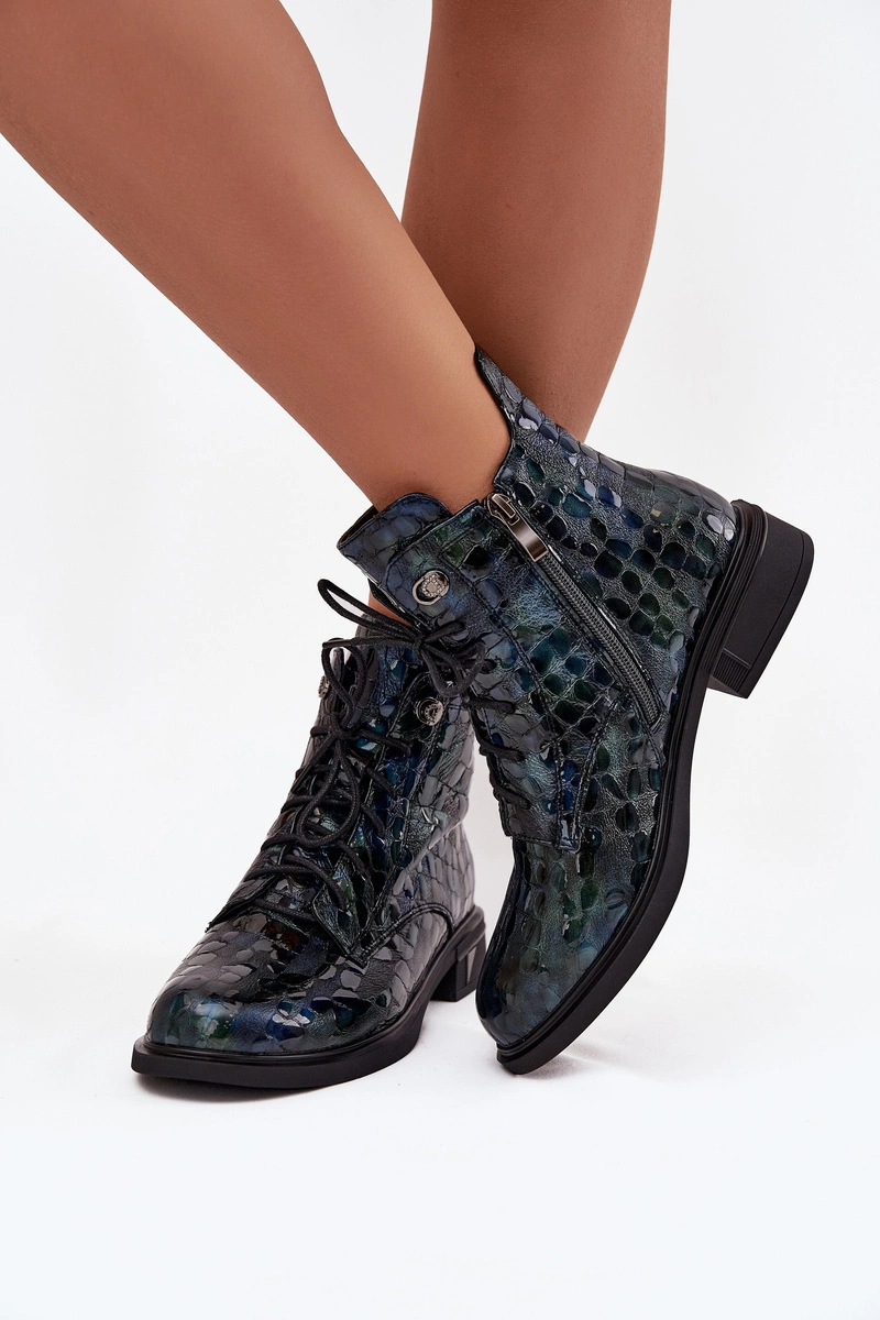 Lakierowane Botki Damskie Z Naturalnej Skóry D&A LZ52-962 Granatowe
