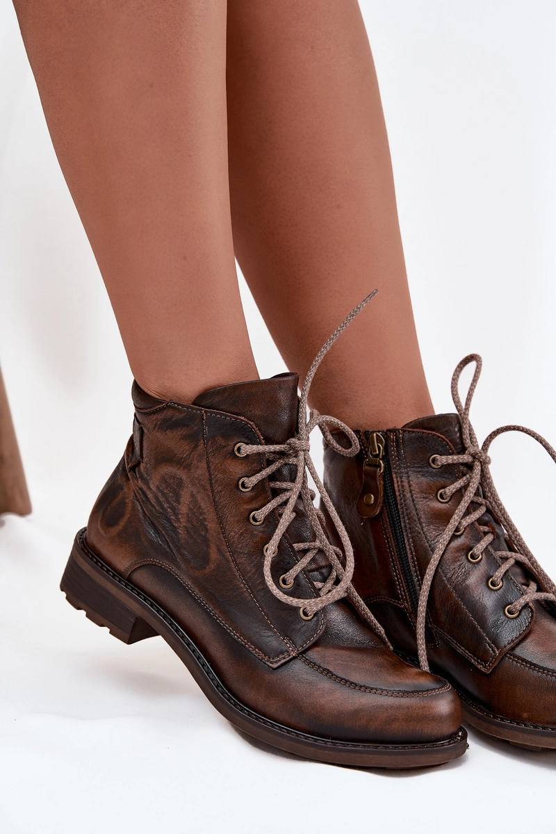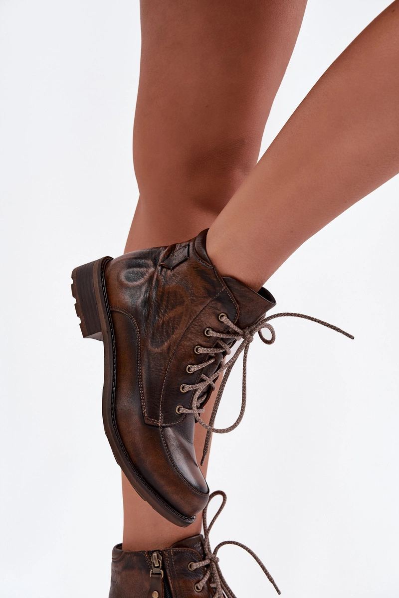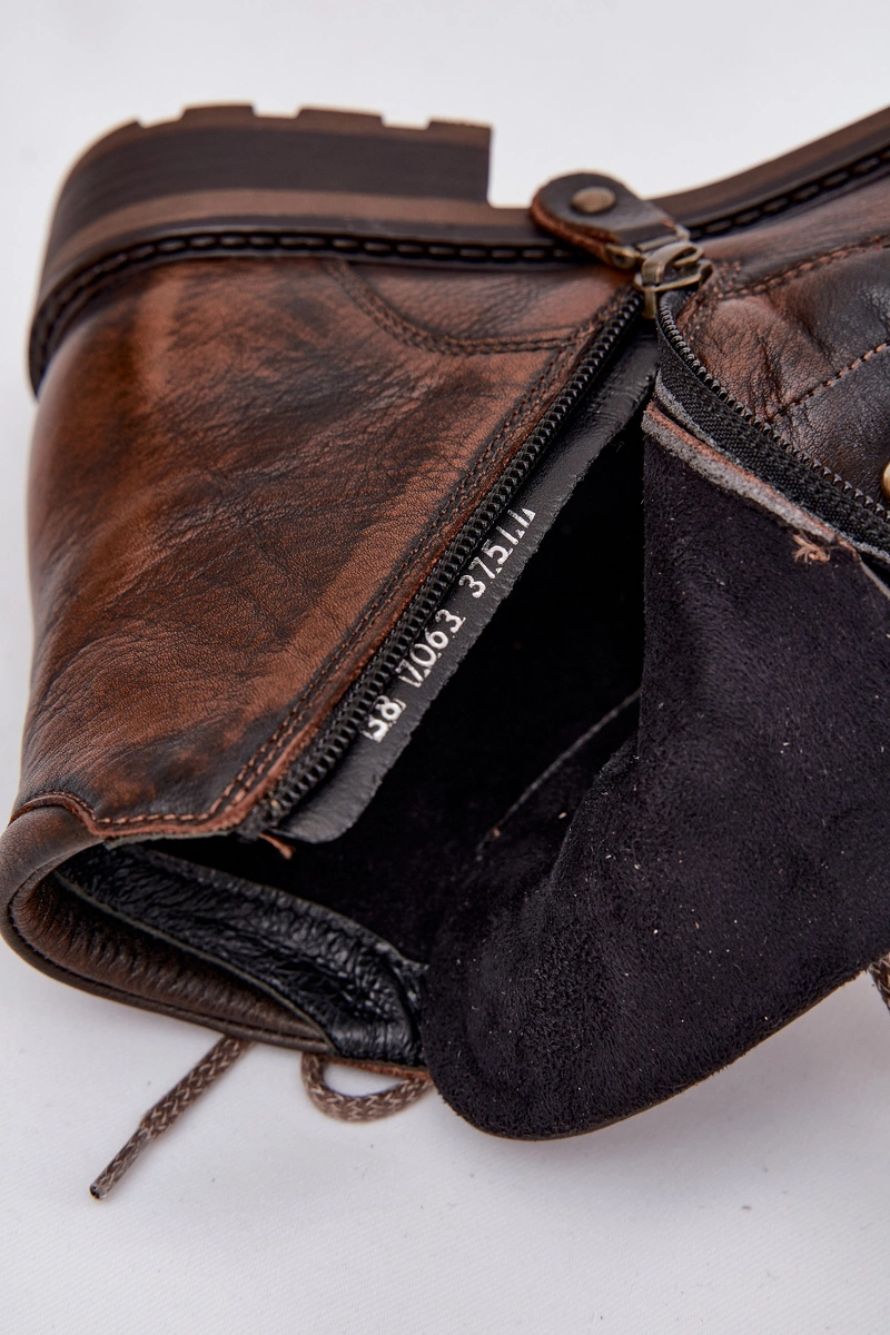 Botki Damskie Z Naturalnej Skóry Na Płaskim Obcasie Maciejka 07063-02 Brązowe