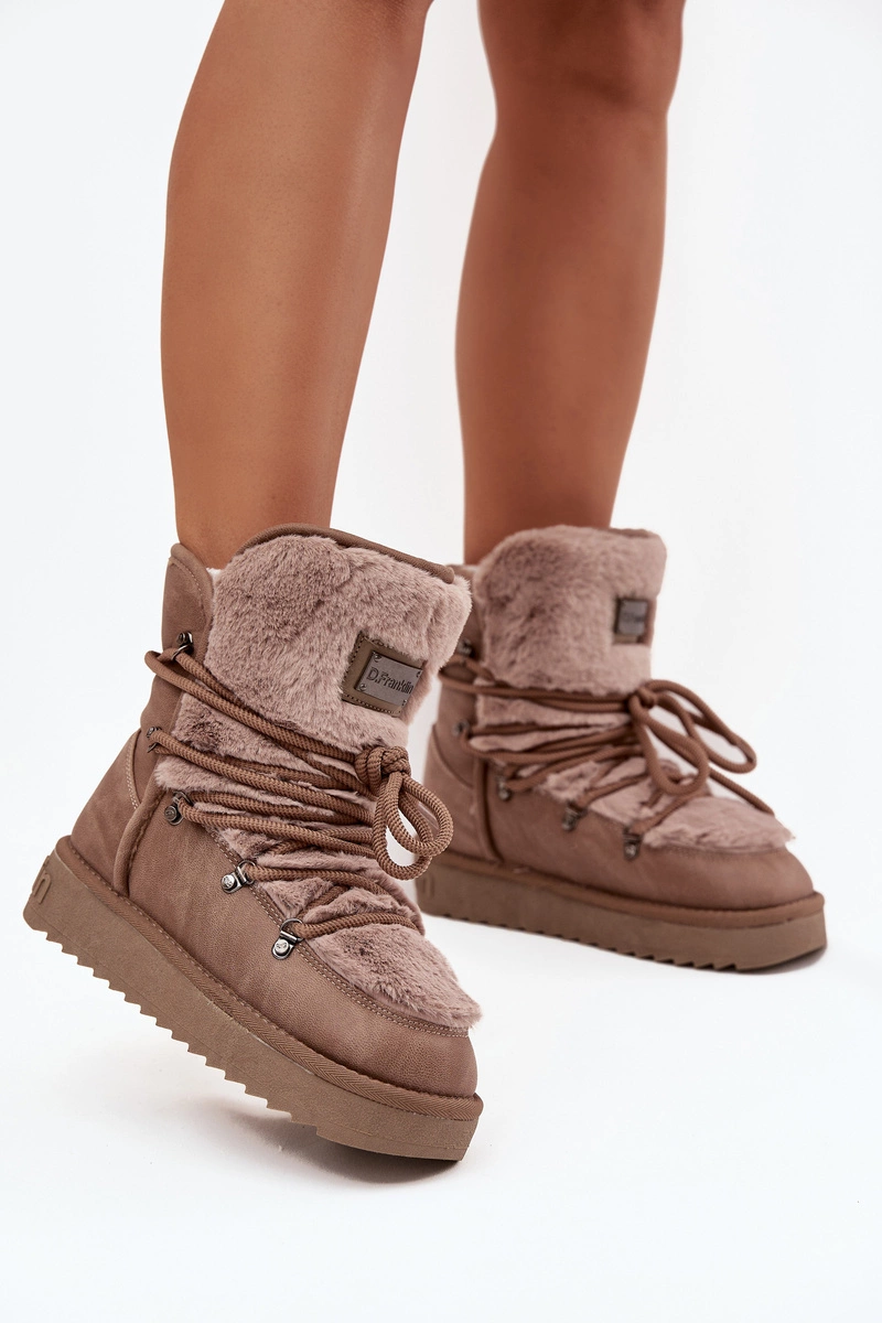 Śniegowce Damskie Na Platformie Z Futerkiem D.Franklin DFSH37022 Beżowe