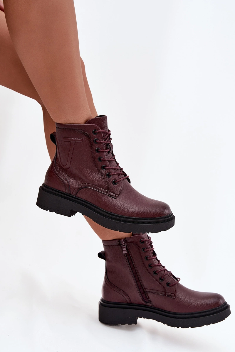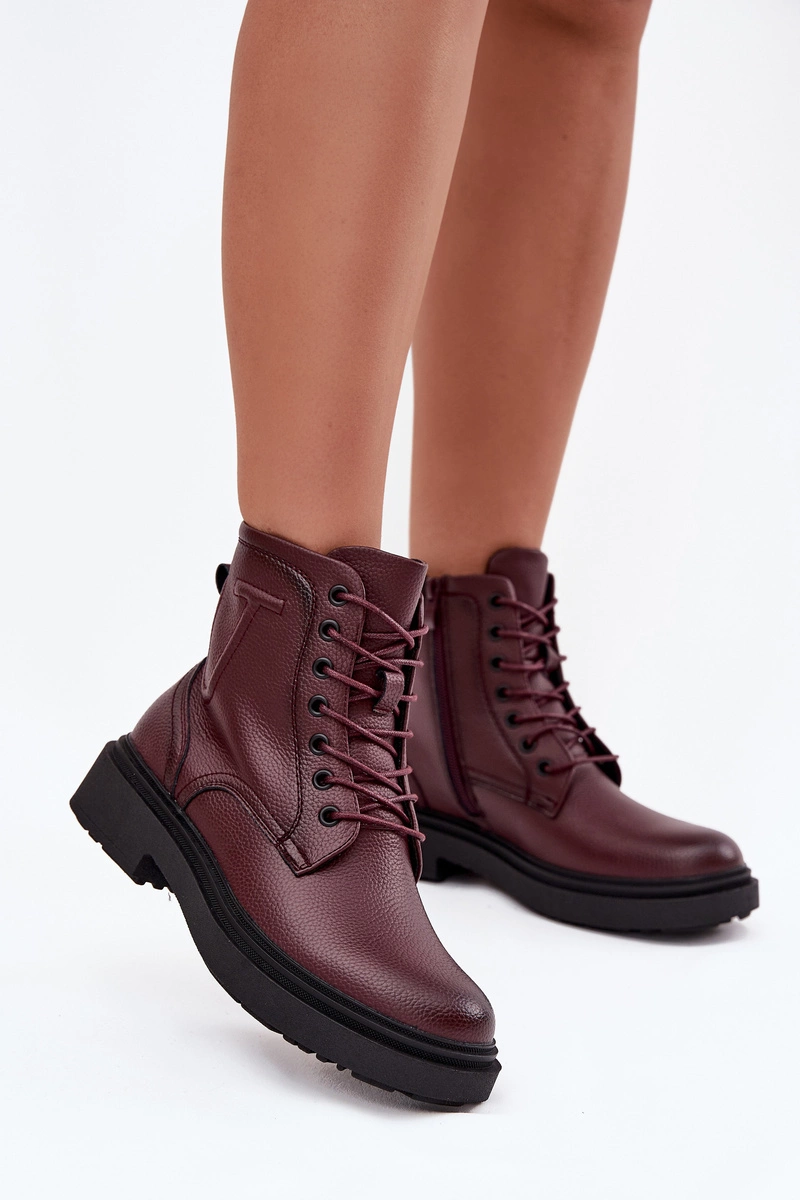 Ocieplane Botki Damskie Z Naturalnej Skóry Sergio Leone BT25248-S Bordowe