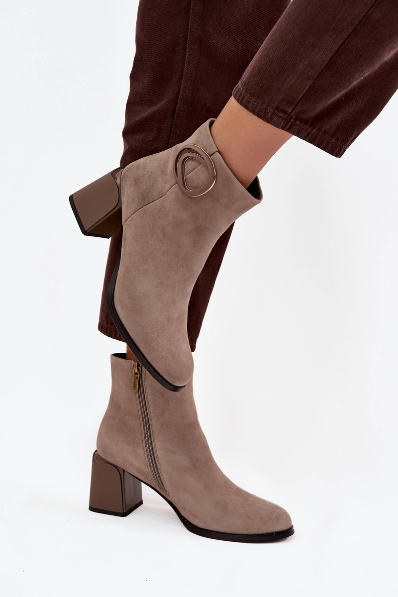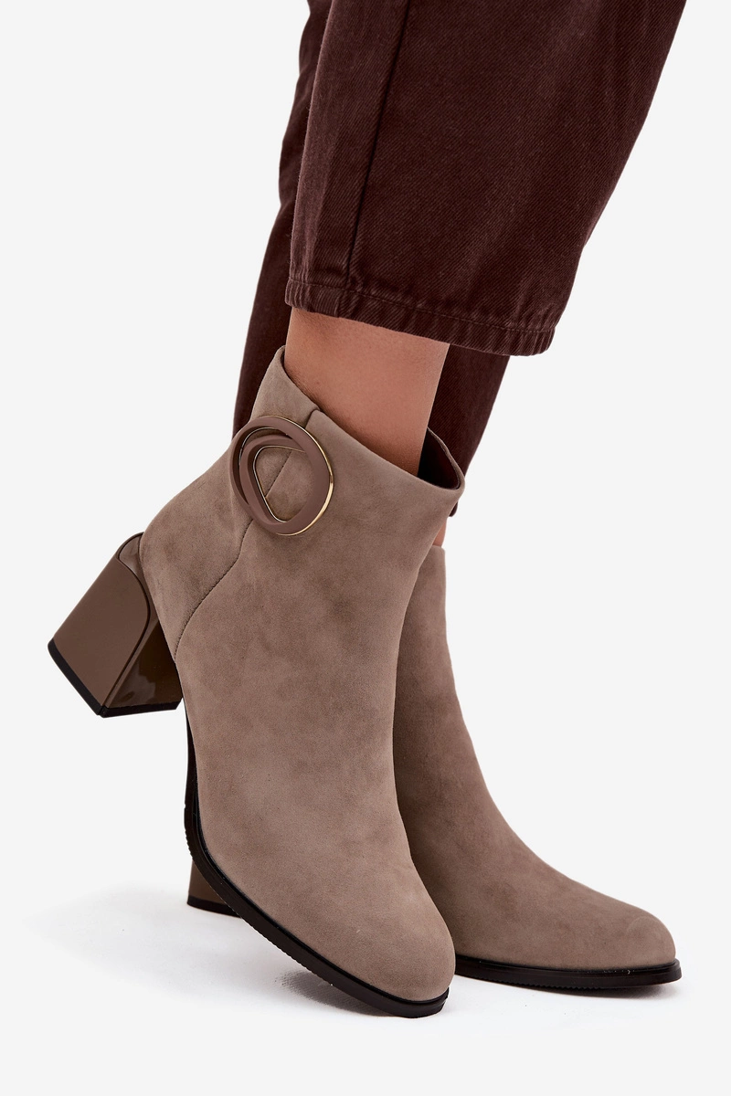 Zamszowe Botki Na Słupku Ocieplane Z Ozdobnym Detalem Artiker 57C0014 Beżowe