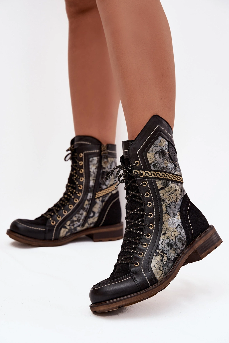 Botki Damskie Z Naturalnej Skóry Maciejka 07097-01 Czarno-Złote