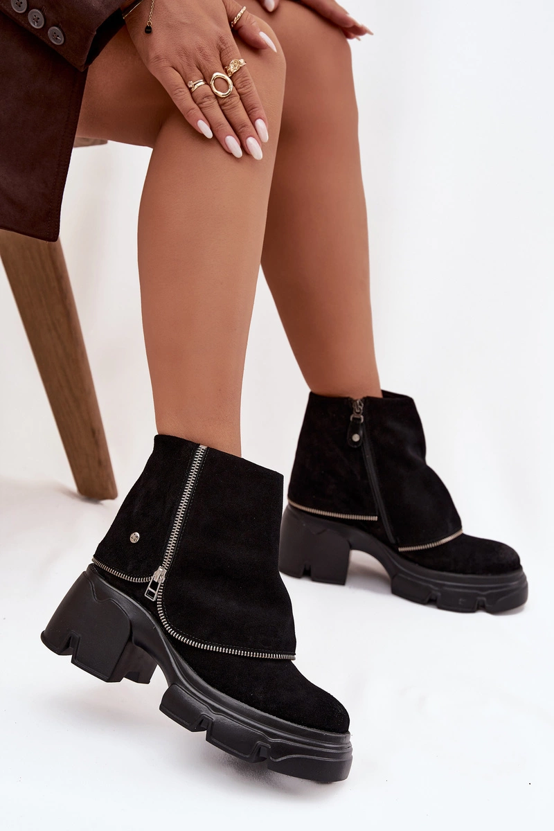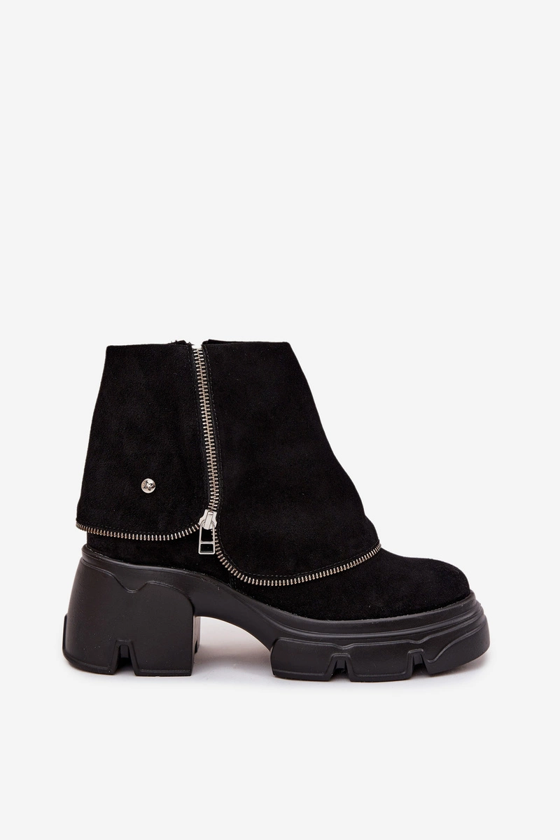 Skórzane Botki Damskie Z Wywiniętą Cholewką Maciejka 07145-01 Czarne