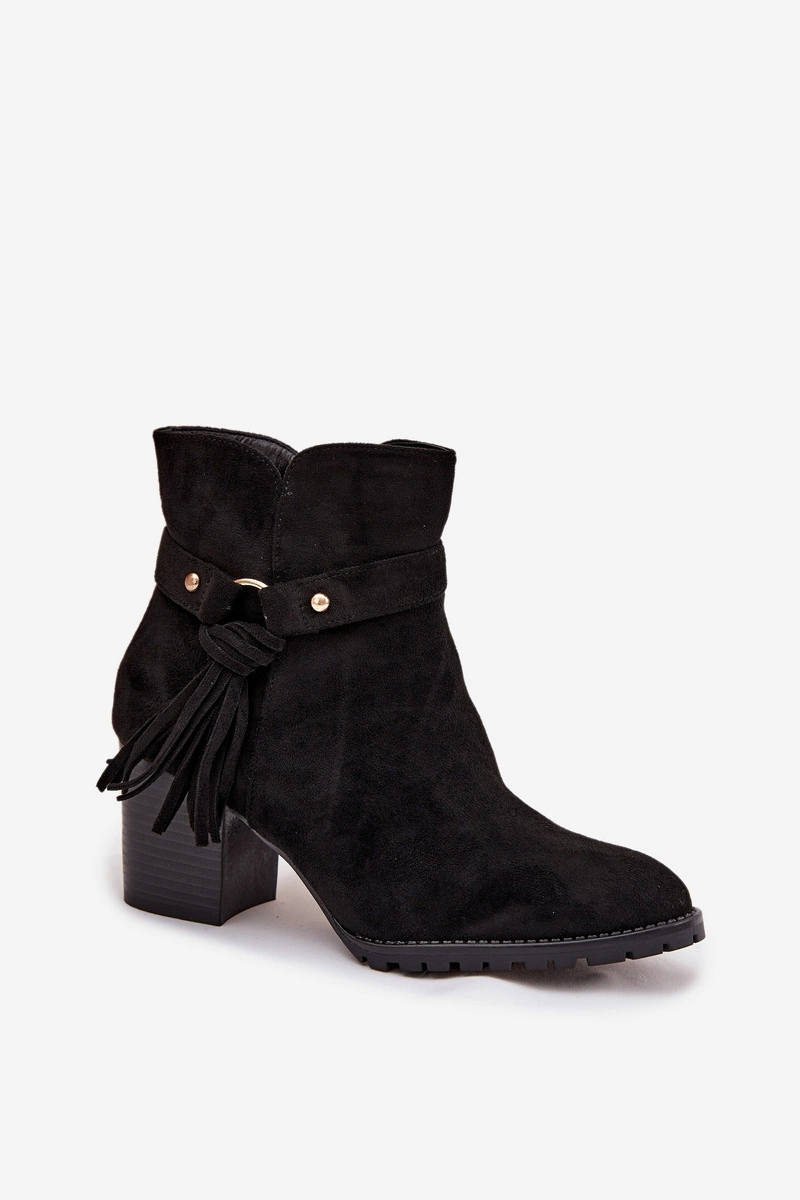 Botki Damskie Na Słupku Z Frędzlami Czarne Rosabella