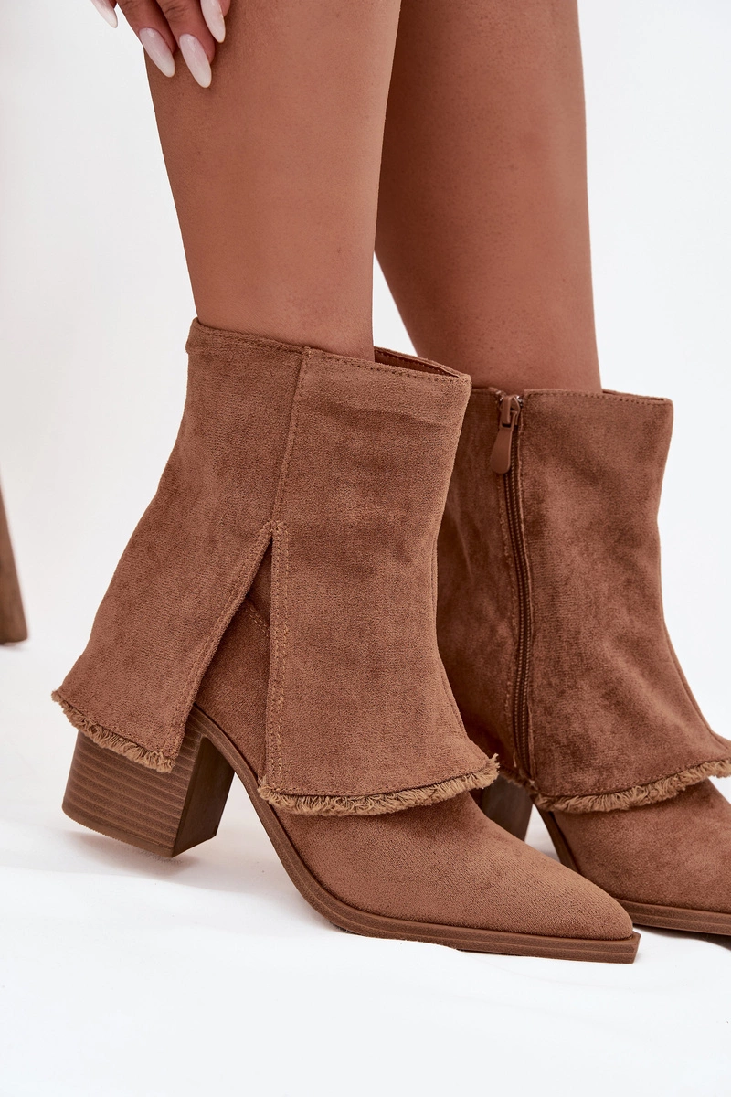 Botki Damskie Na Słupku Z Wywiniętą Cholewką Jasnobrązowe Idalia