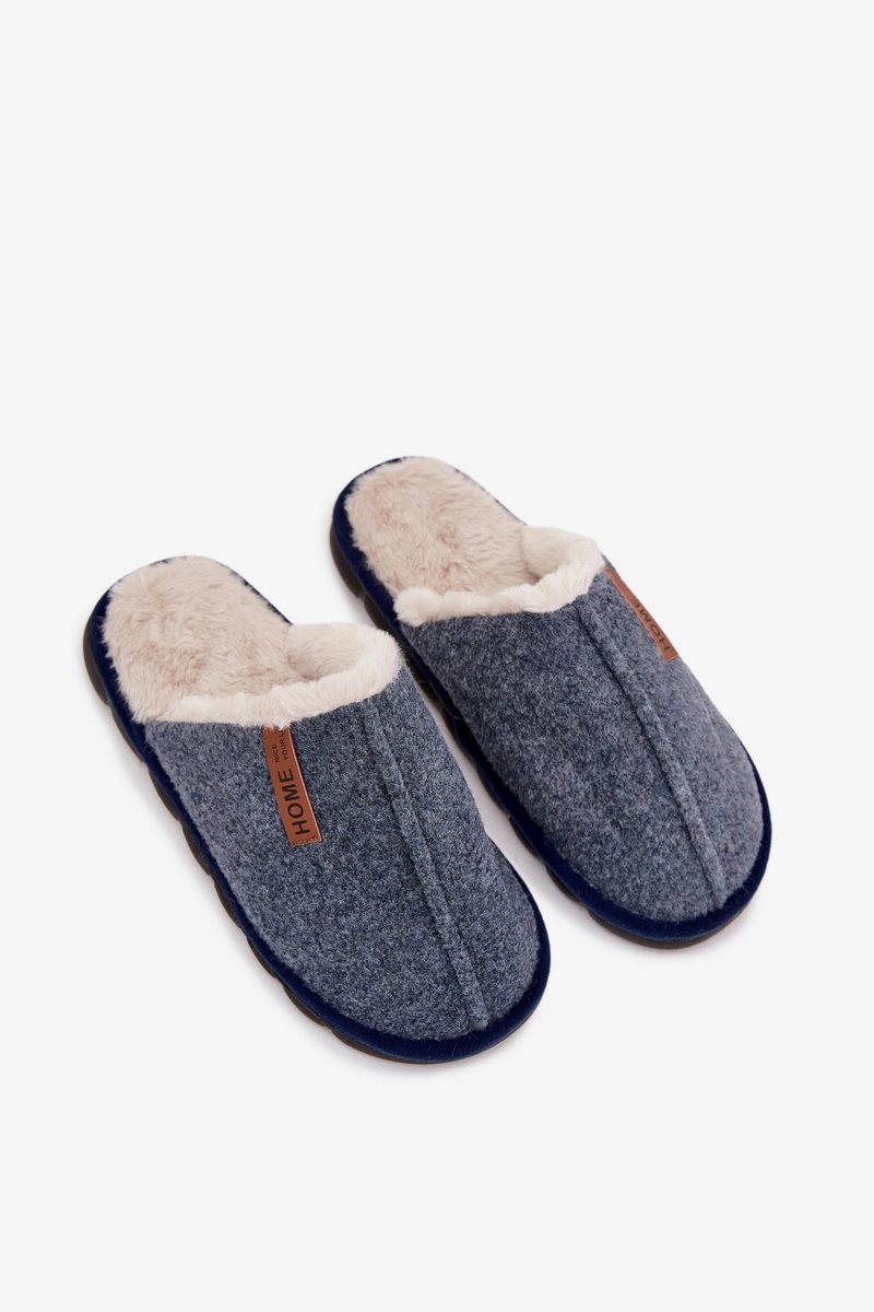 Kapcie Męskie Ocieplane Futerkiem Granatowe Darielle