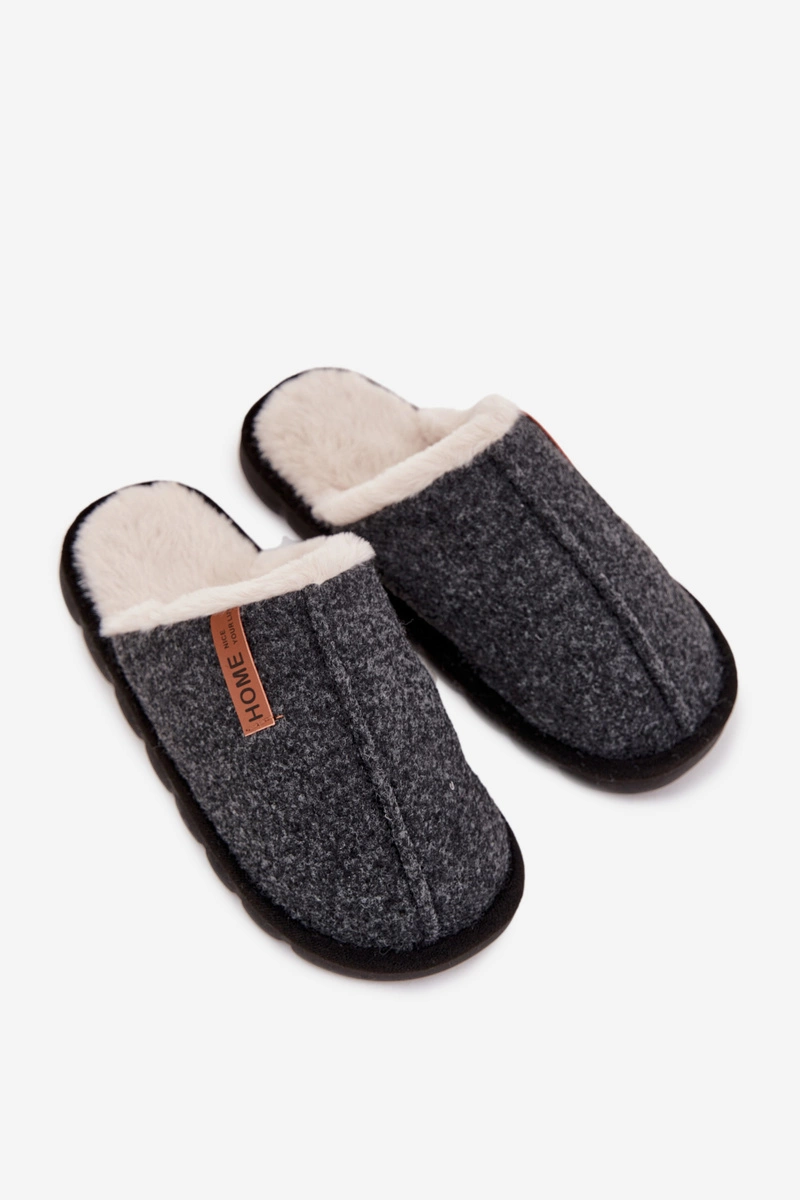 Męskie kapcie ocieplane futerkiem to idealna propozycja na chłodniejsze dni. Szerokie, zakryte noski gwarantują wygodę i swobodę ruchów, a miękkie wnętrze z futerkiem zapewnia ciepło oraz komfort podczas noszenia. Przód buta ozdobiony został stylowym paseczkiem z napisem, który dodaje całości nowoczesnego charakteru. To praktyczne i wygodne kapcie, doskonałe do codziennego użytku w domu.