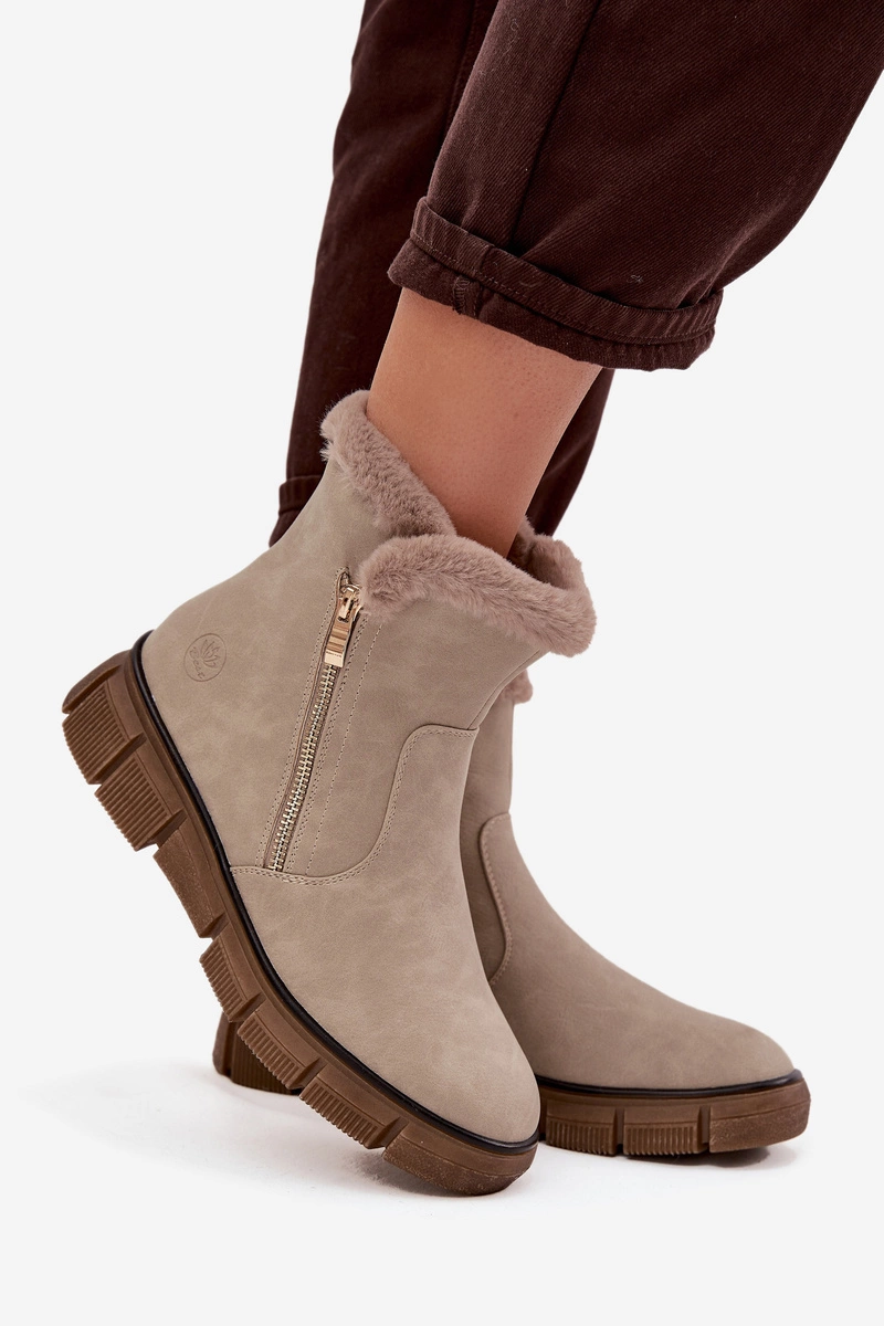Śniegowce Damskie Na Platformie Z Futerkiem Beżowe Briselle