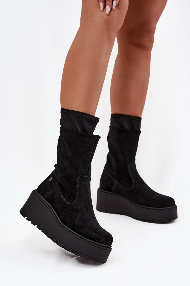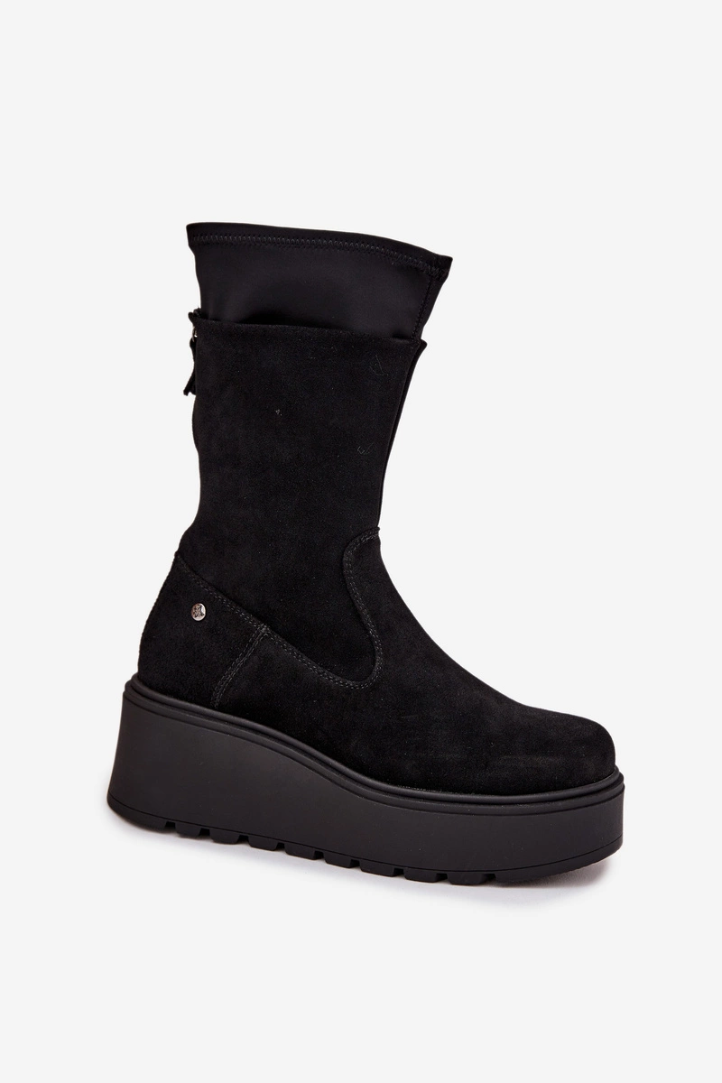 Damskie Skórzane Zamszowe Botki Na Masywnej Platformie Maciejka A7161-20 Czarne