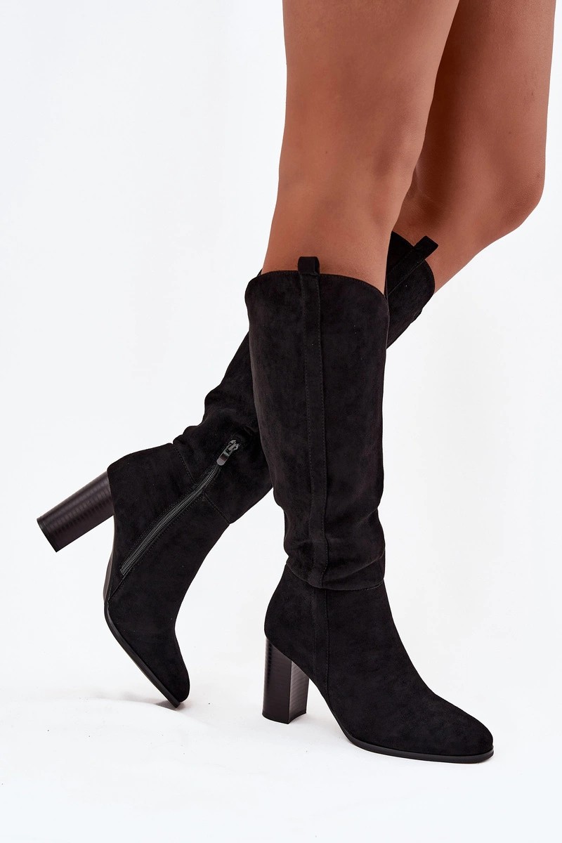 Kozaki Damskie Na Słupku Z Eko Zamszu Czarne Prisca