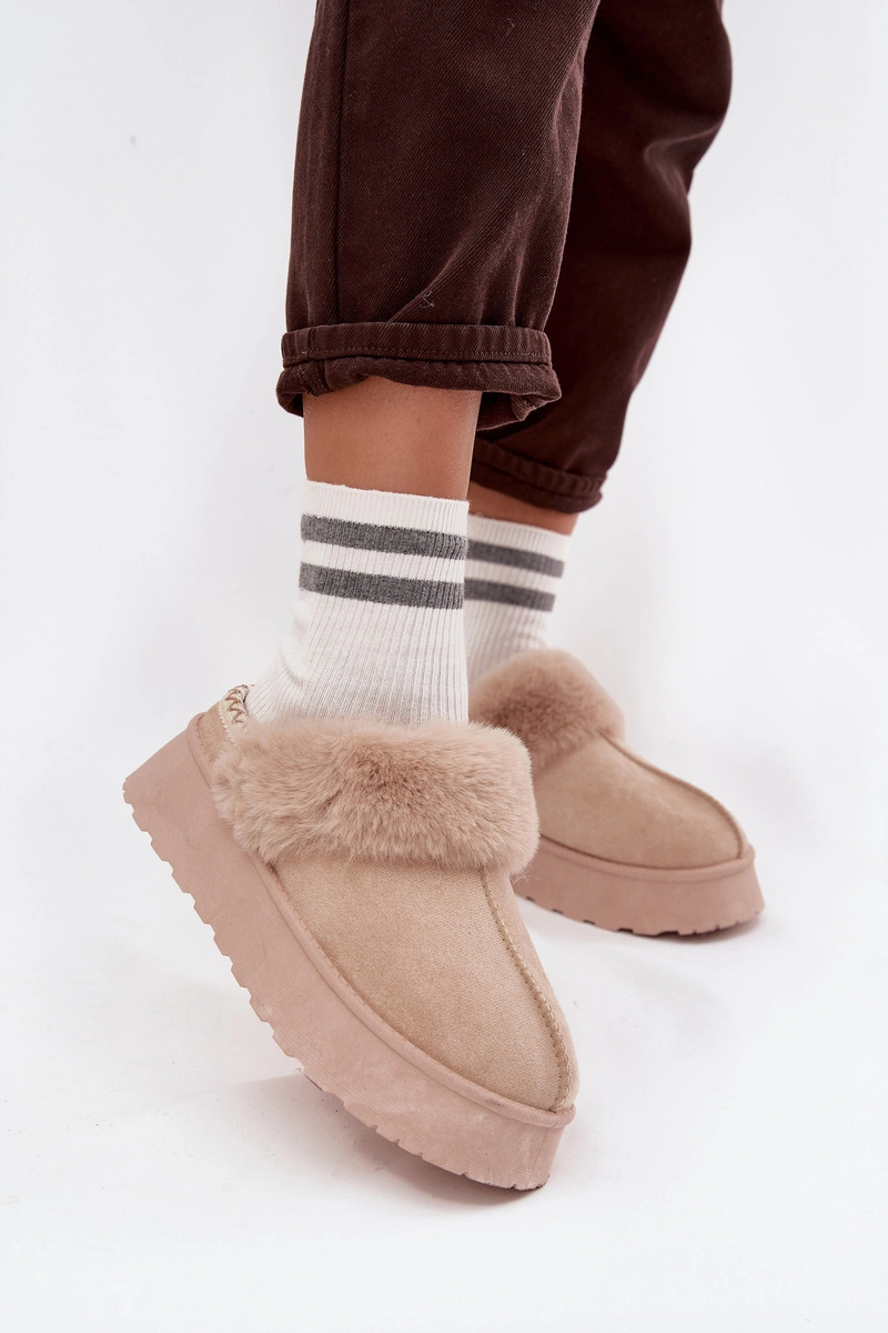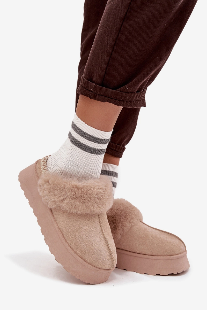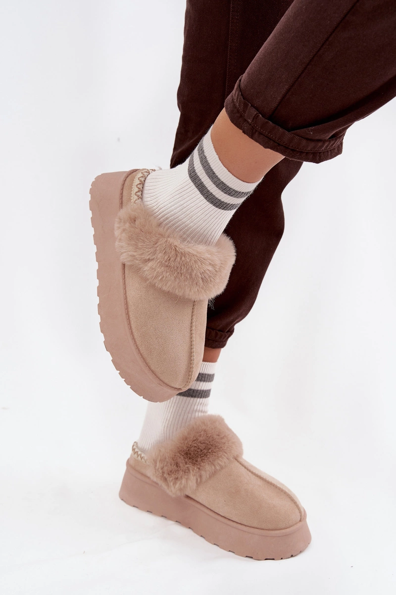 Śniegowce Damskie Na Platformie Z Futerkiem I Haftem Beżowe Querina