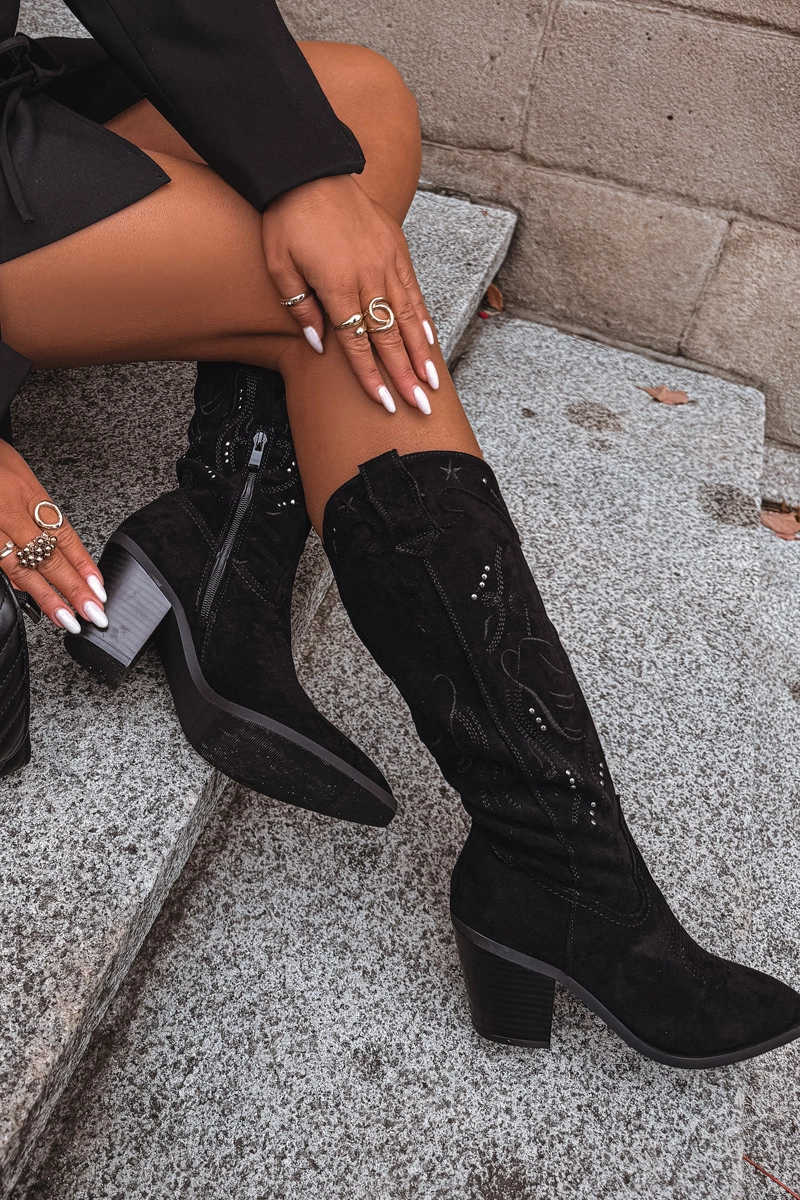Kozaki Kowbojki Damskie Na Słupku Z Eko Zamszu Czarne Coretta