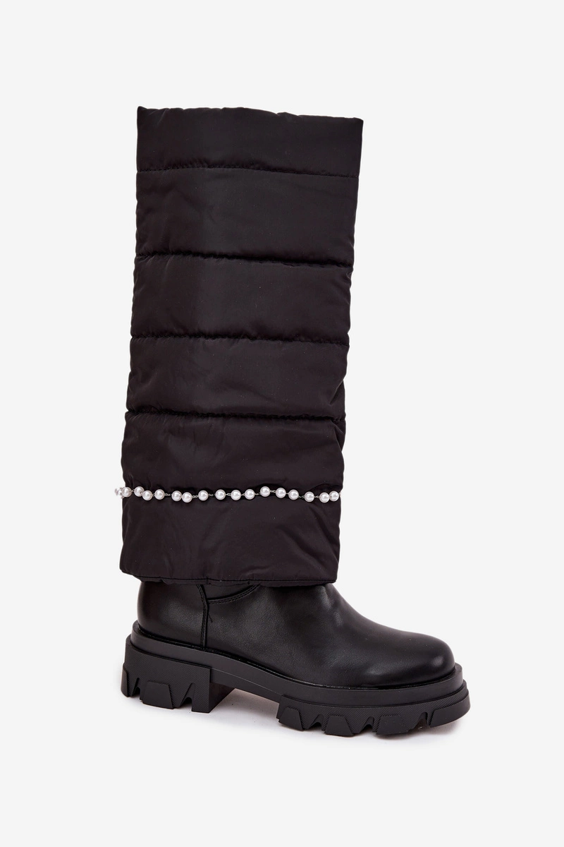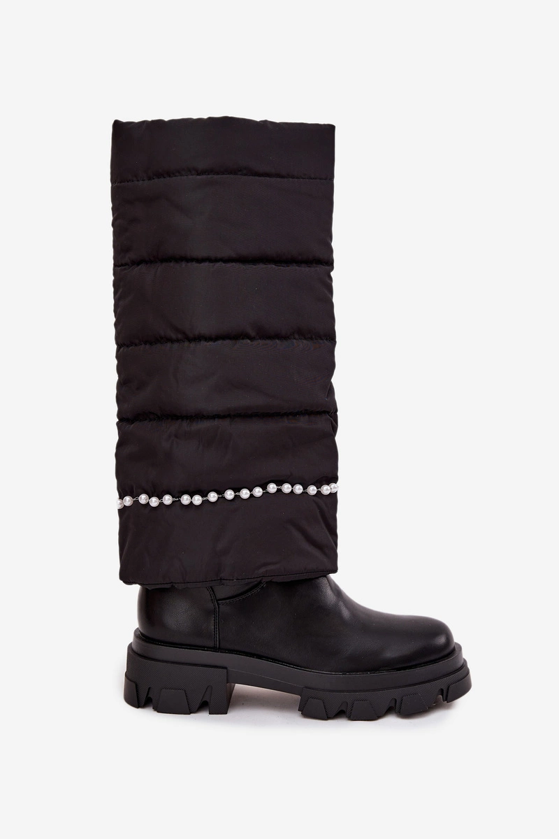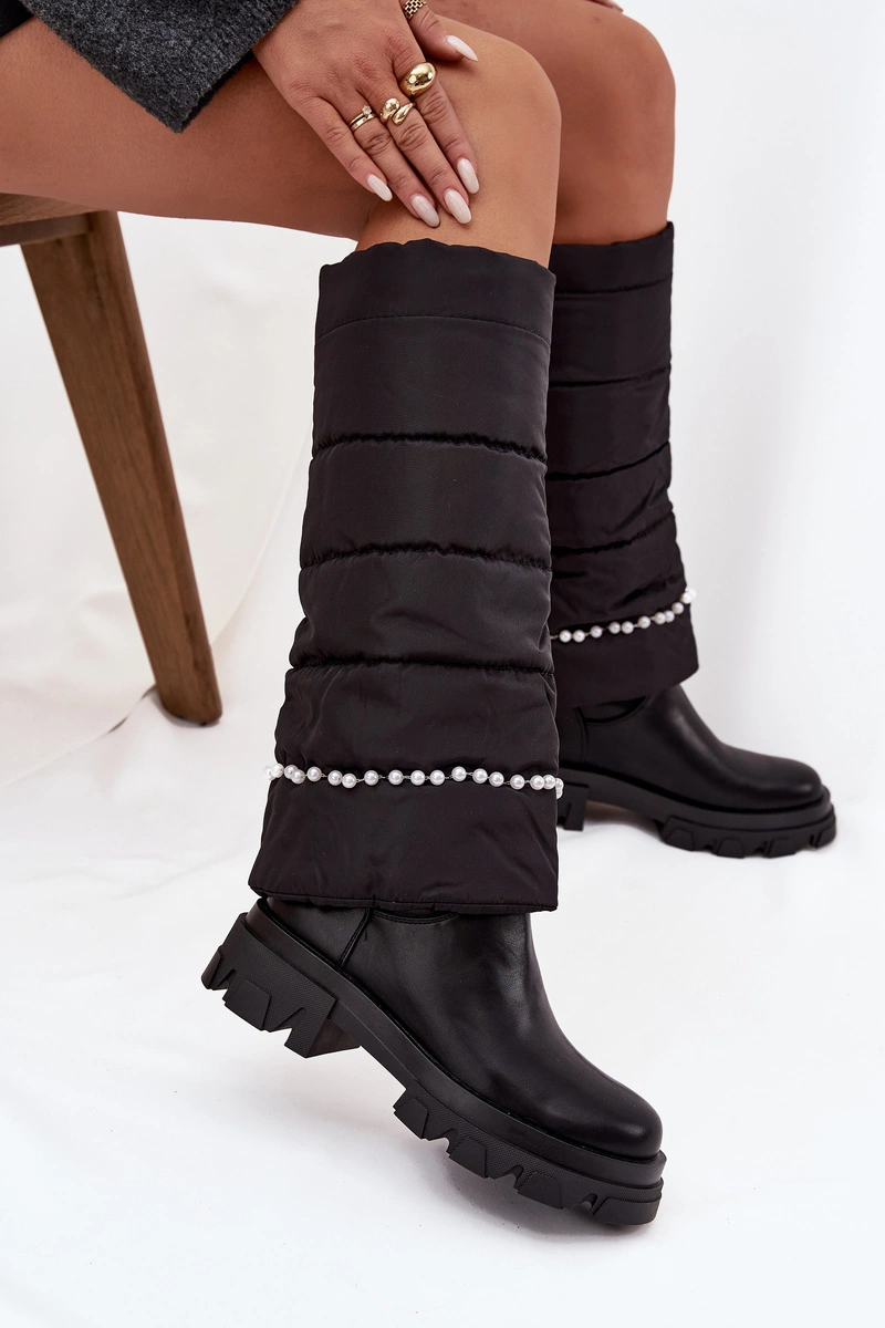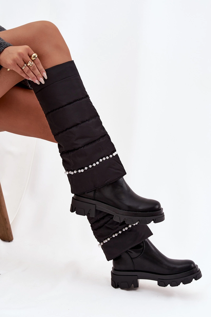 Kozaki damskie wykonane z połączenia eko skóry i materiału tekstylnego to stylowa propozycja na chłodniejsze dni. Wsuwany fason zapewnia wygodę zakładania. Wnętrze ocieplone kocem obuwniczym gwarantuje ciepło i komfort podczas noszenia. Zaokrąglone noski podkreślają klasyczny charakter obuwia, natomiast subtelne koraliki stanowią elegancki detal, który dodaje całości wyjątkowego uroku. To modne i wygodne kozaki, które doskonale sprawdzą się w codziennych stylizacjach. Przy wyborze rozmiaru prosimy kierować tabelą rozmiarów.