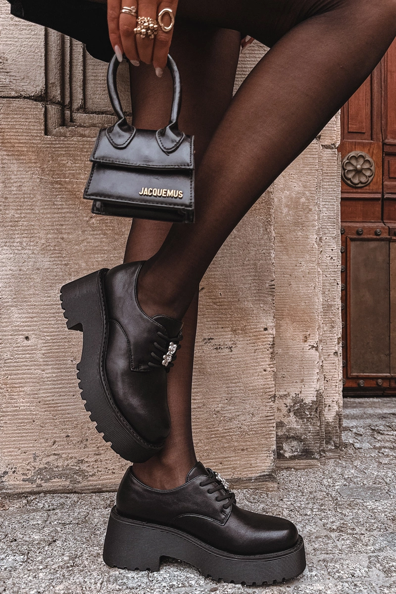 Półbuty Damskie Z Przypinką Eko Skórzane Czarne Laurea