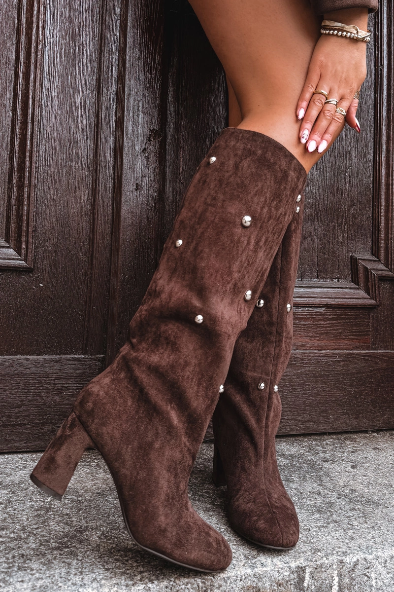 Kozaki Damskie Ocieplane Na Słupku Z Ozdobnymi Detalami Czekoladowe Lucinda