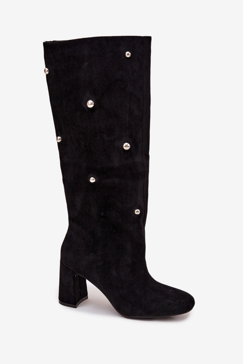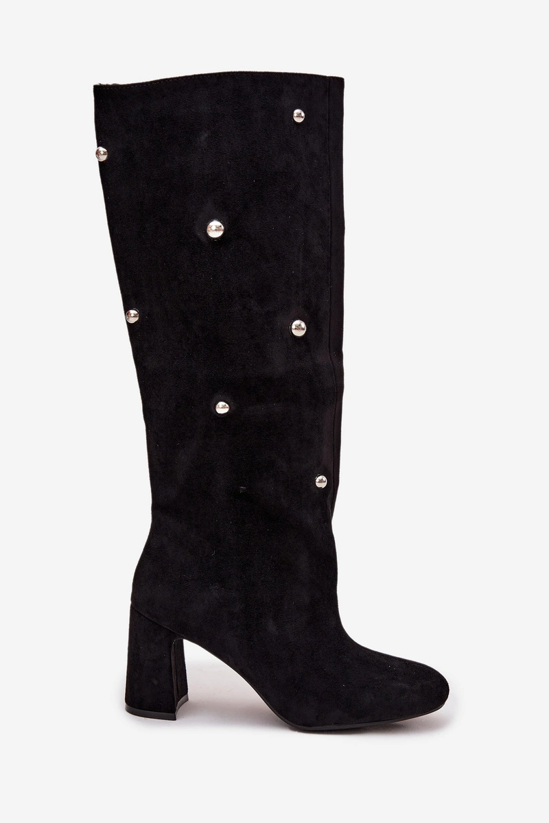 Kozaki Damskie Ocieplane Na Słupku Z Ozdobnymi Detalami Czarne Lucinda