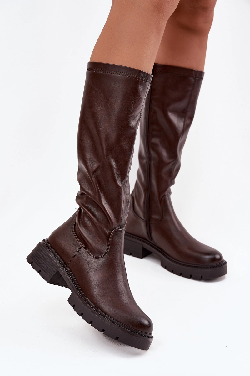 Kozaki Damskie Z Eko Skóry Czekoladowe Oceana