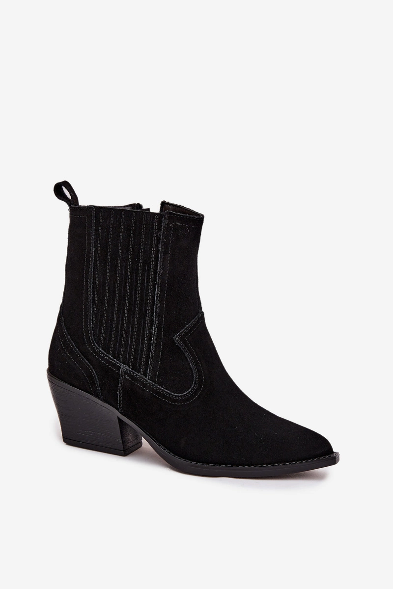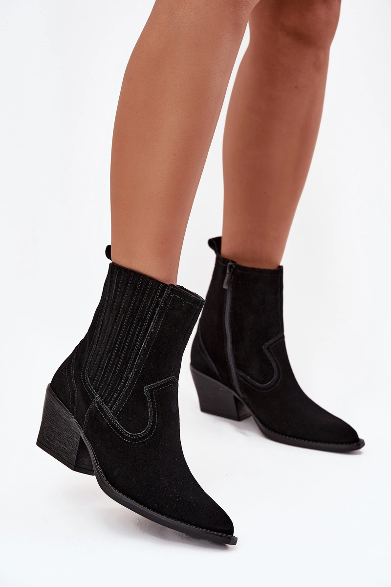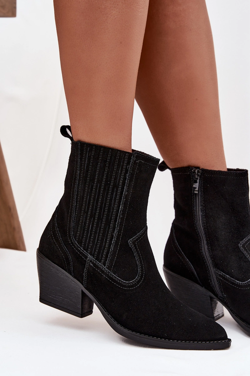 Botki kowbojki damskie z naturalnego zamszu to wyjątkowa propozycja, która łączy styl i komfort. Szpiczaste noski nadają im charakterystycznego wyglądu, a ocieplenie kocem obuwniczym zapewnia ciepło w chłodniejsze dni. Zamek błyskawiczny umożliwia wygodne zakładanie, a obcas słupek zapewnia stabilność i wygodę podczas chodzenia. Idealne do codziennych stylizacji, te botki dodadzą wyjątkowego akcentu każdemu lookowi. Przy wyborze rozmiaru prosimy sugerować się tabelą rozmiarów.