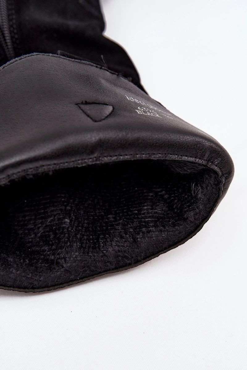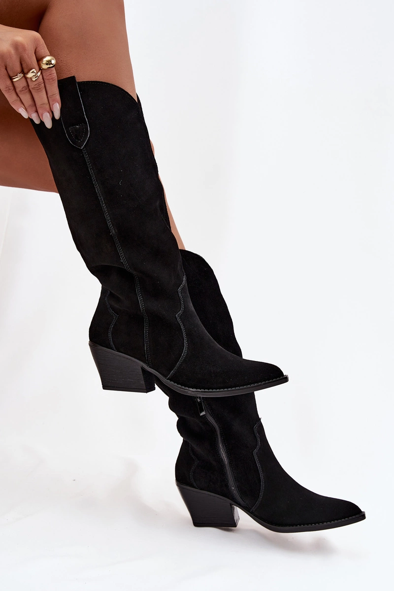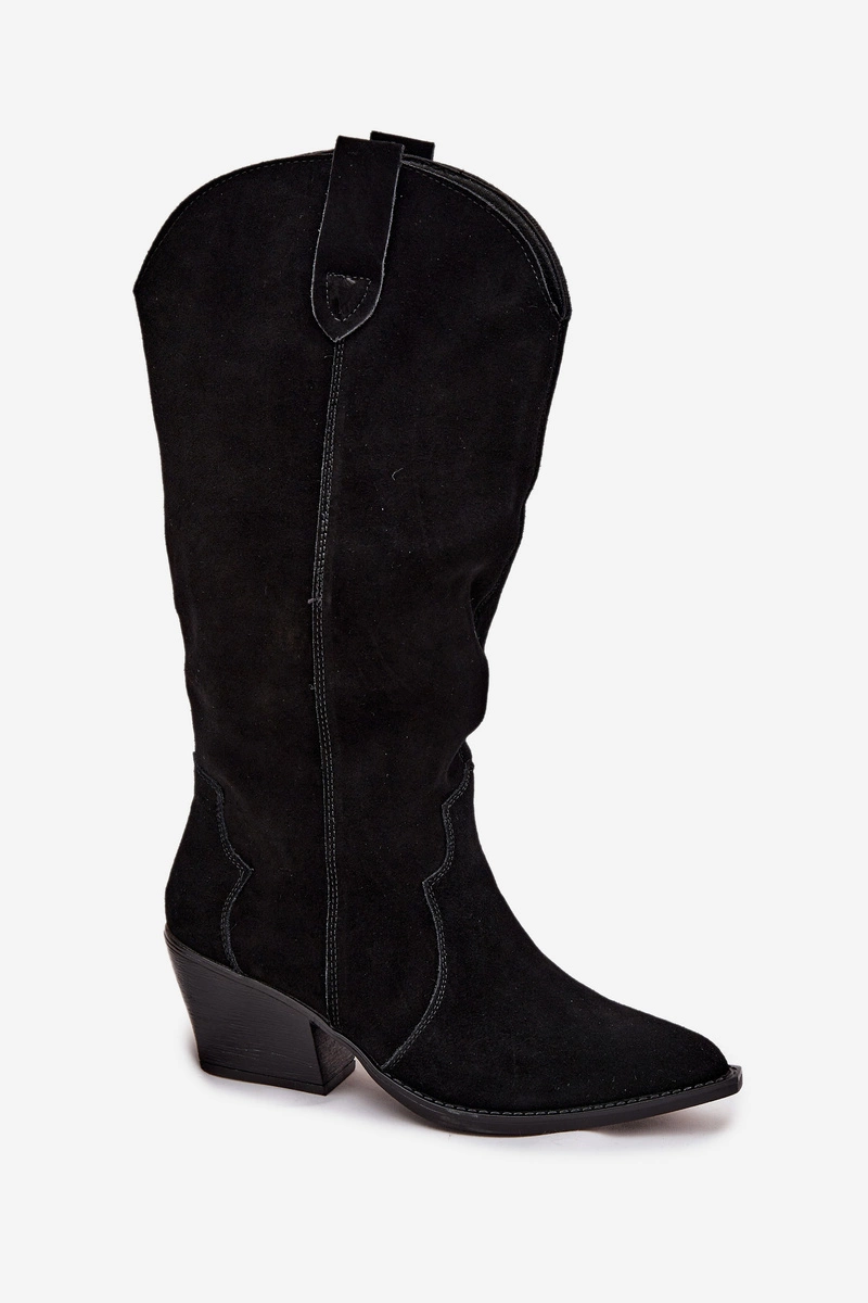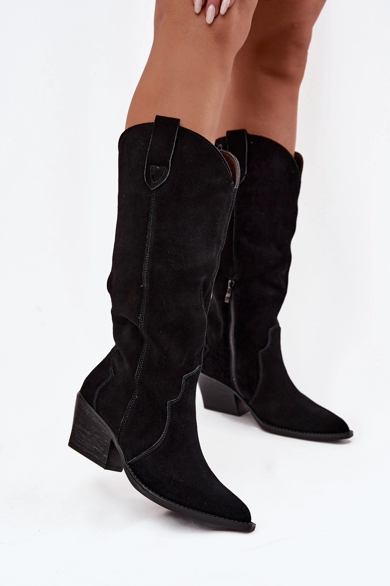Skórzane Zamszowe Kozaki Kowbojki Damskie Ocieplane Czarne Urselle