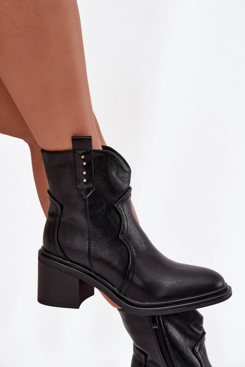 Ocieplane Botki Damskie Na Obcasie Czarne Brilynn