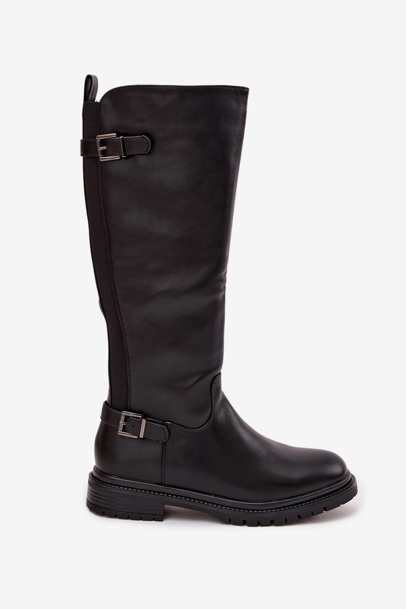 Ocieplane Kozaki Damskie Na Płaskim Obcasie Z Klamrami Czarne Sarelle