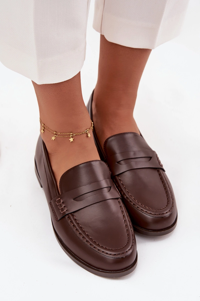 Mokasyny Loafersy Damskie Z Eko Skóry Czekoladowe Bessina