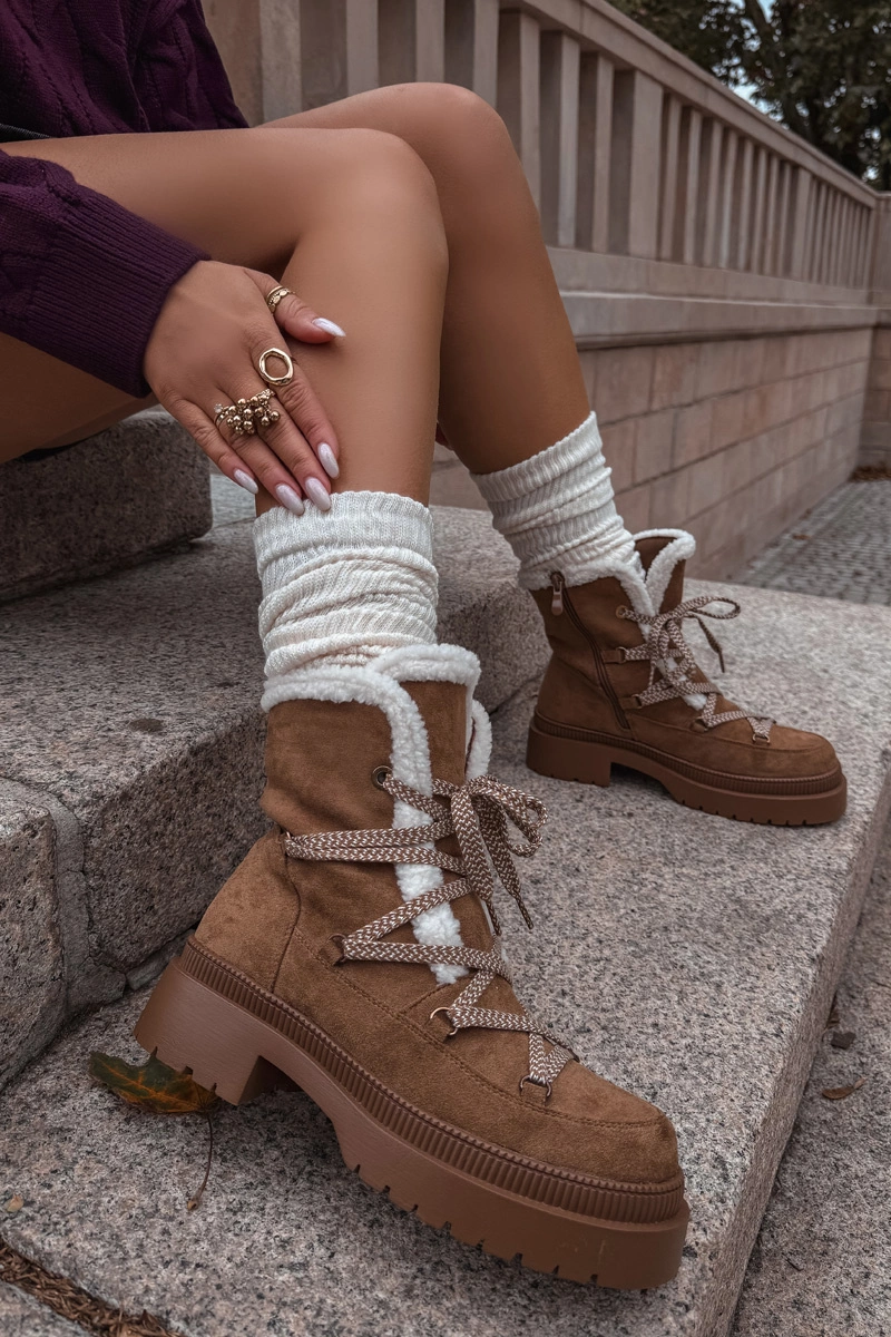 Śniegowce Damskie Z Kożuszkiem Camel Irmara
