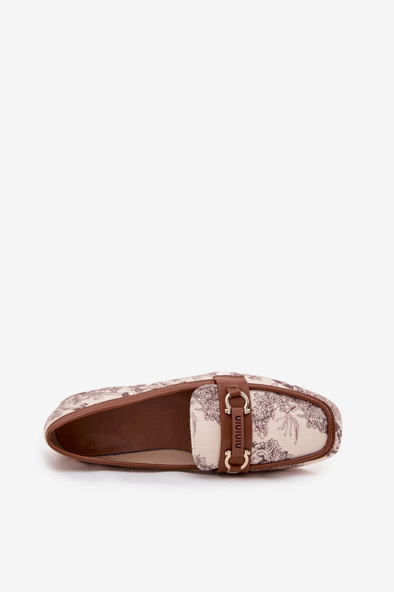 Wzorzyste Mokasyny Loafersy Damskie Z Ozdobnym Elementem Beżowo-Brązowe Evelora