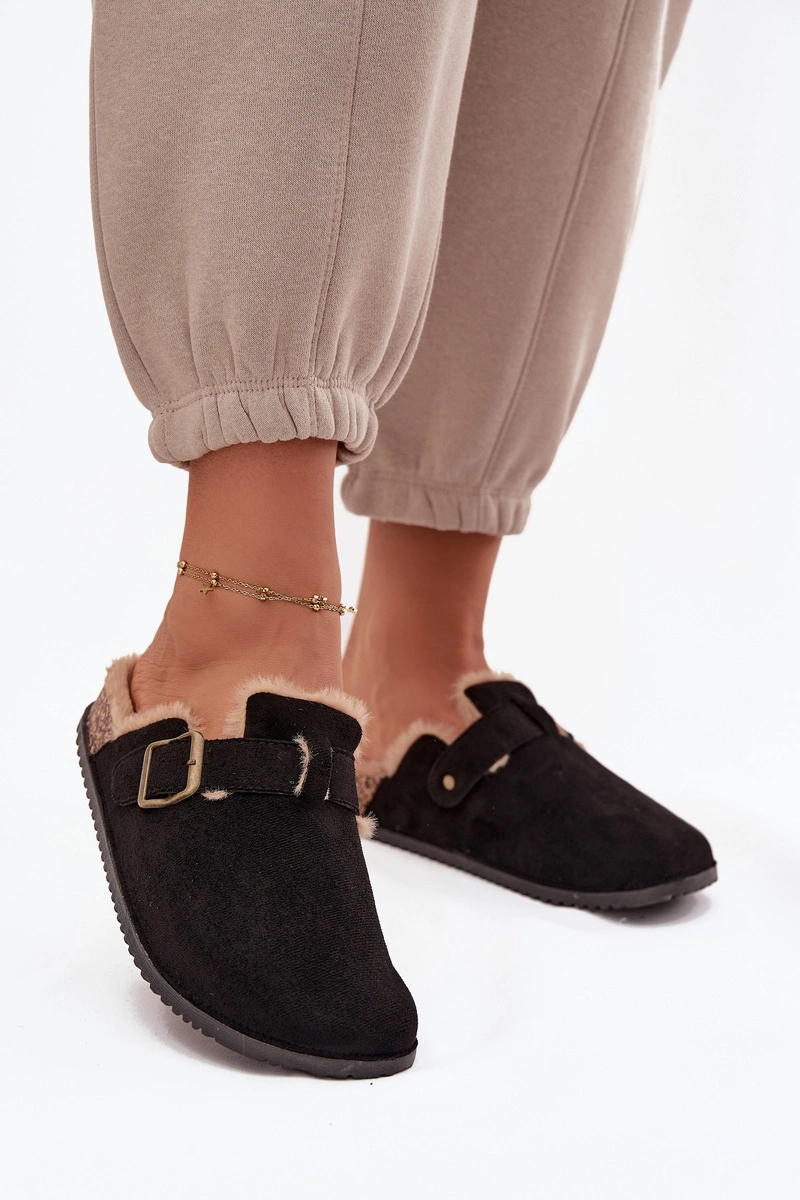Klapki Chodaki Damskie Ocieplane Futerkiem Z Klamrą Czarne Sylisse