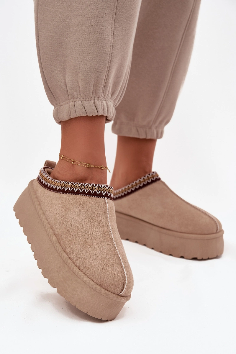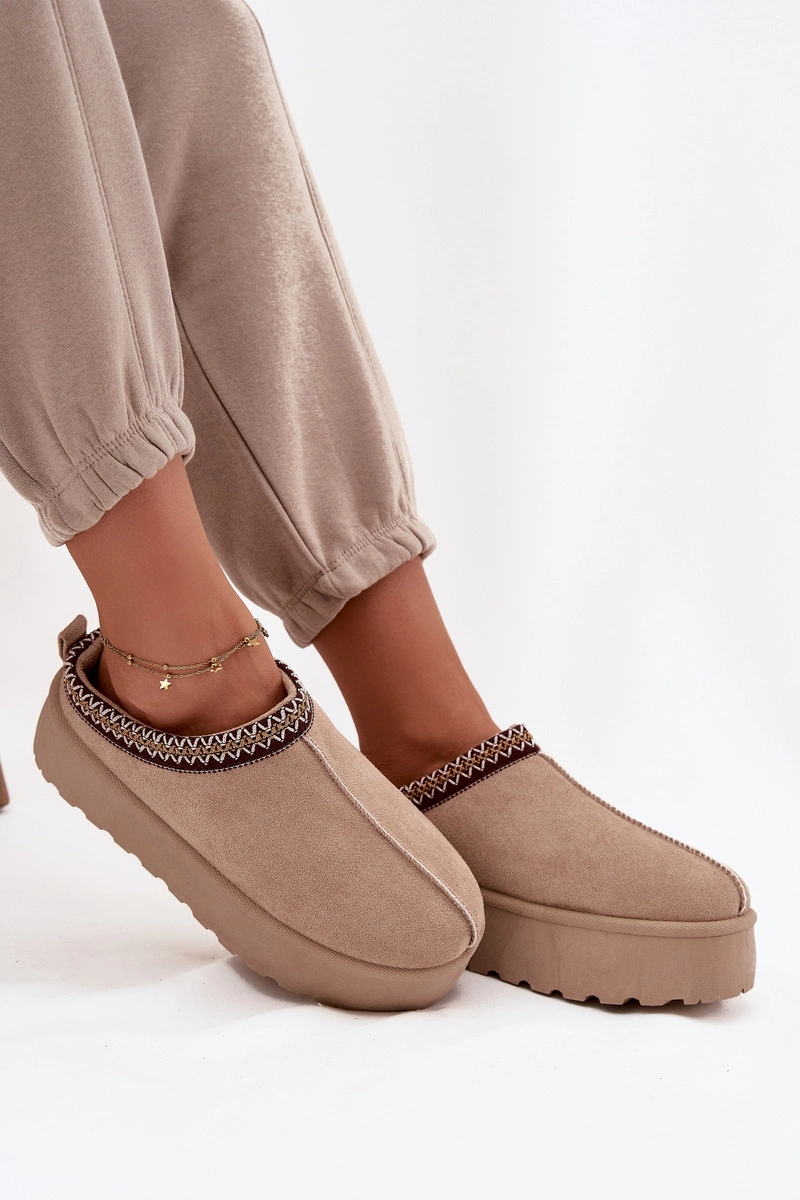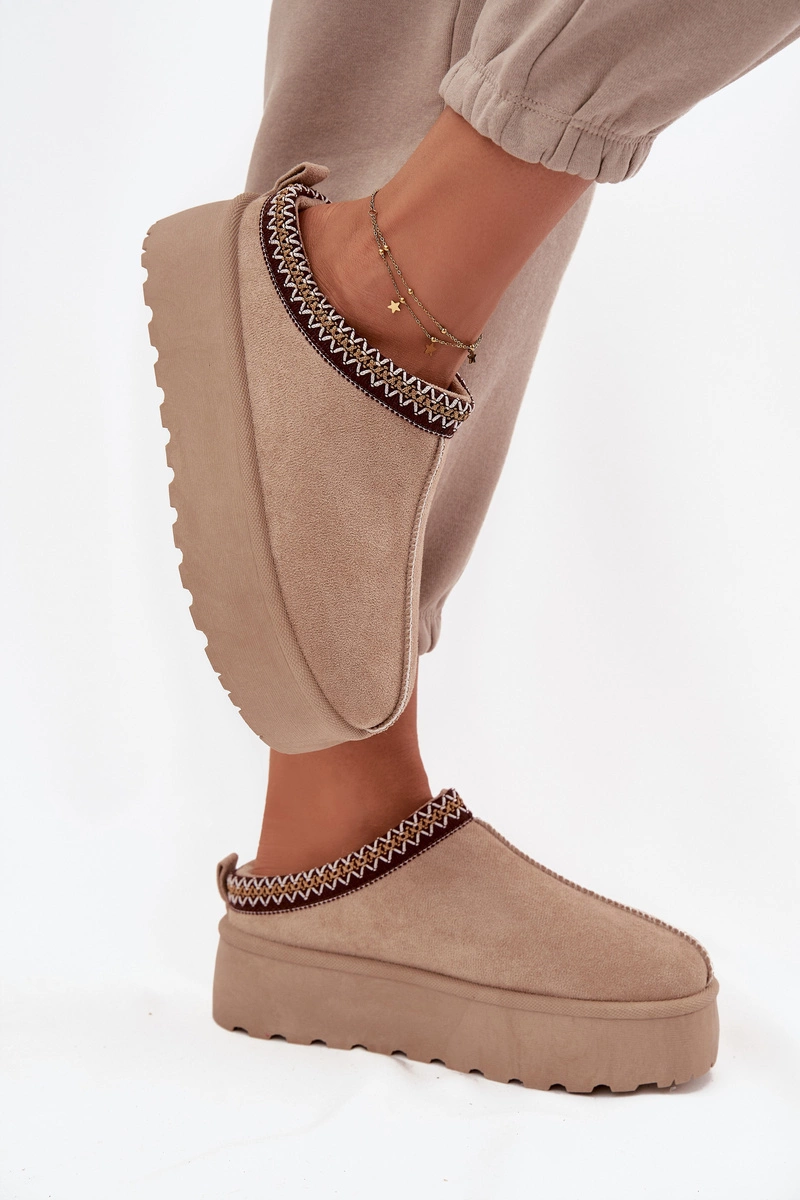 Śniegowce Damskie Z Ozdobnym Haftem Beżowe Jenira