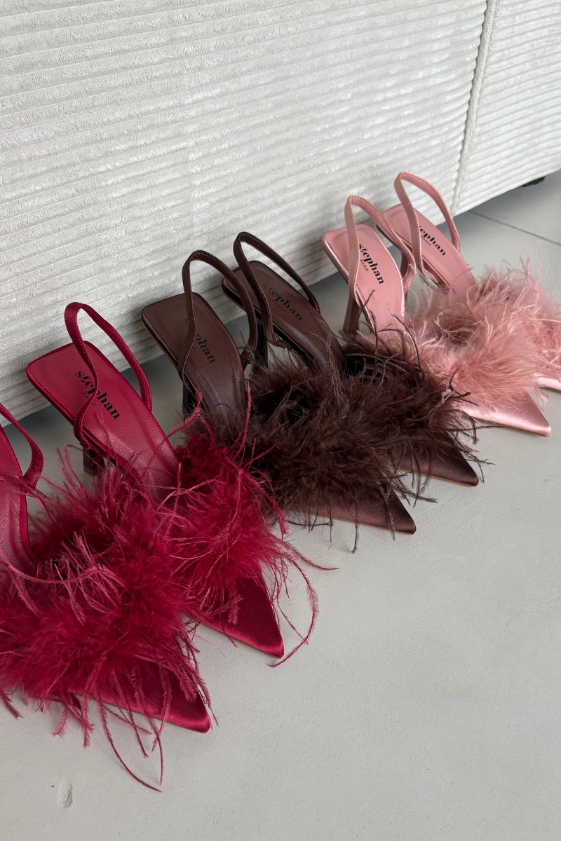 Szpilki Z Piórami I Odkrytą Piętą Czekoladowe Belice