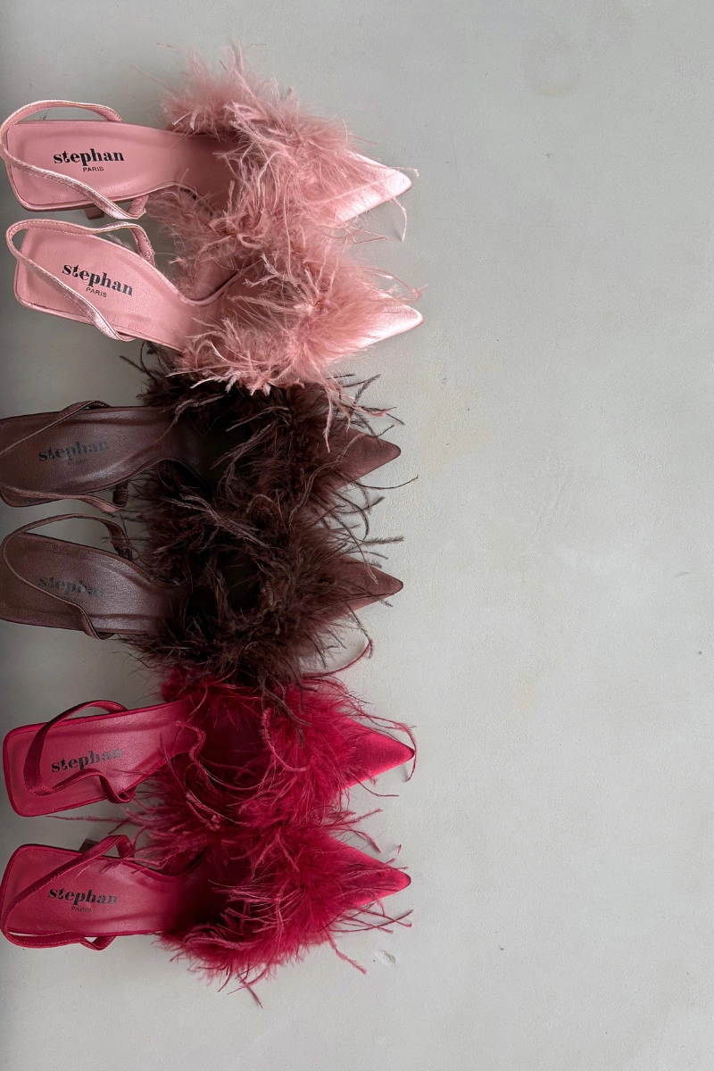 Szpilki Z Piórami I Odkrytą Piętą Różowe Belice