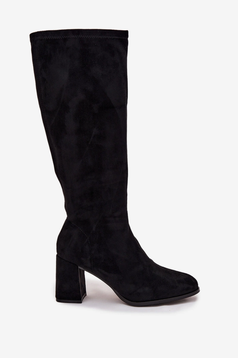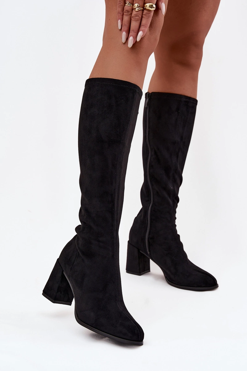 Kozaki Damskie Na Słupku Z Eko Zamszu Czarne Yelisse