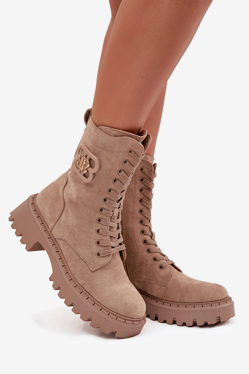 Botki Wokrery Damskie Z Ozdobnym Elementem Ocieplane Beżowe Kalindra