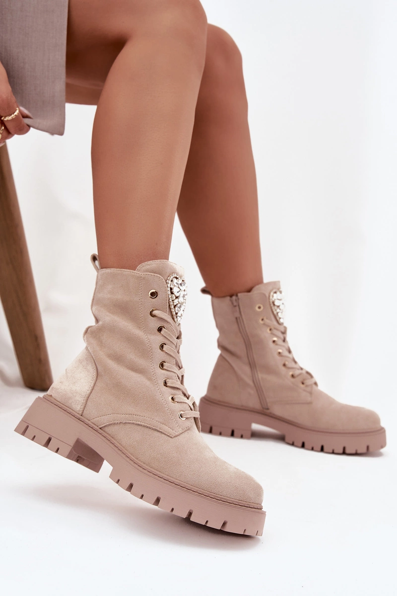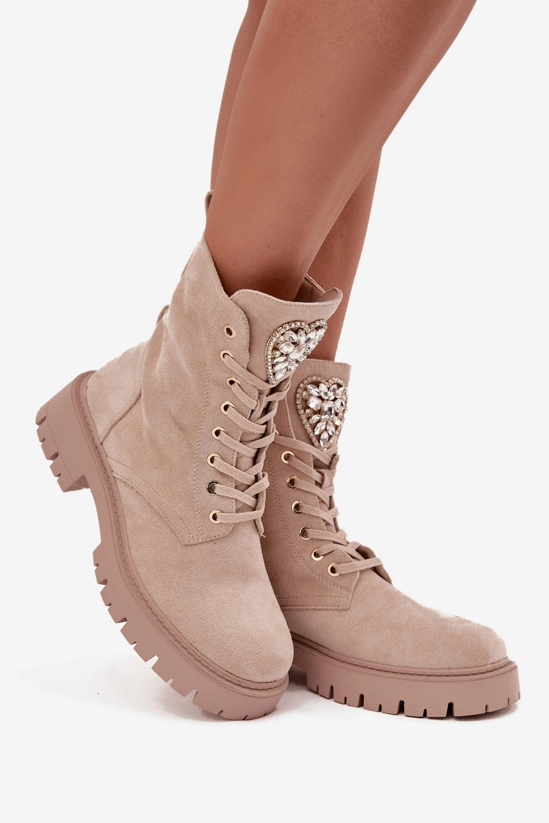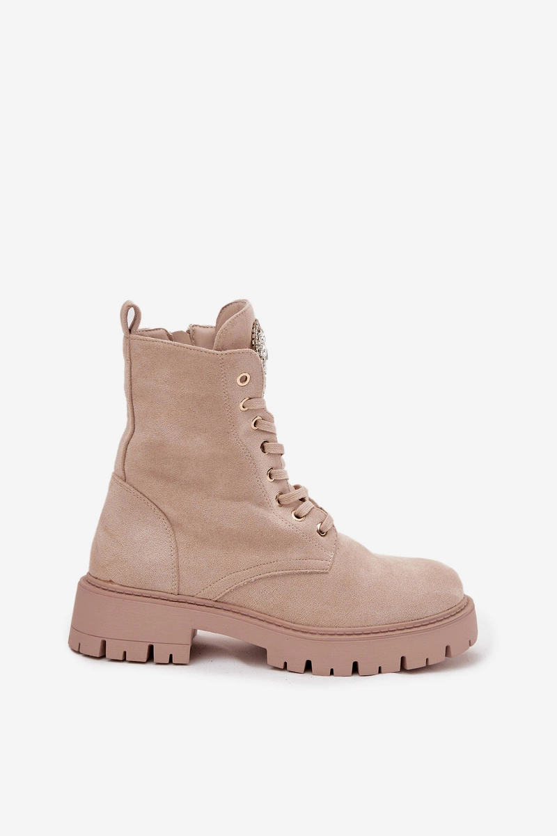 Botki Workery Damskie Z Kryształkami Na Języku Jasnobeżowe Rosira