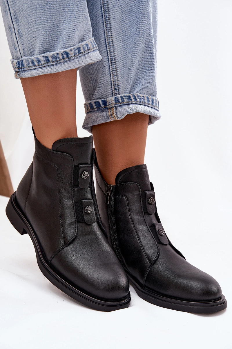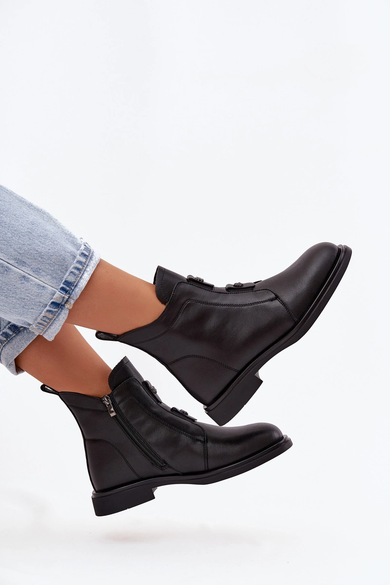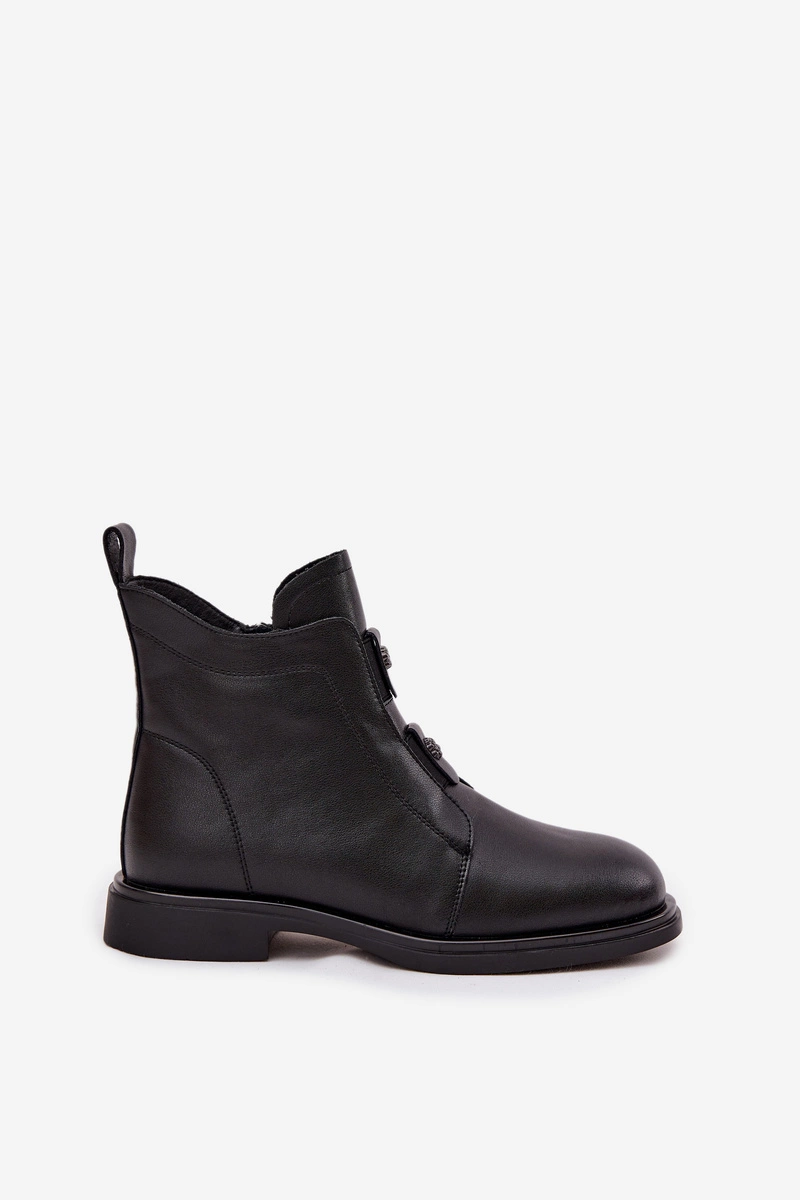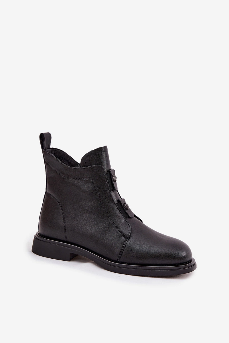Skórzane Ocieplane Botki Damskie D&A MK52-026 Czarne