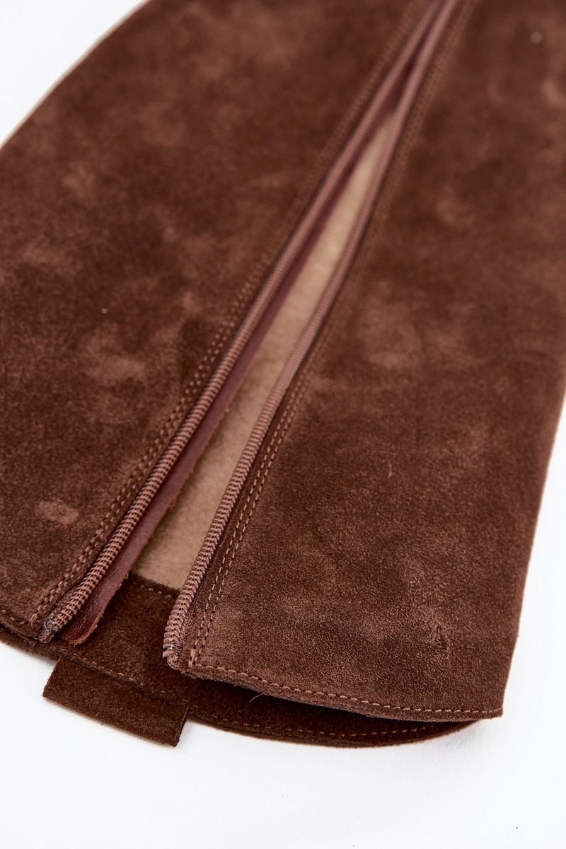 Kozaki kowbojki damskie wykonane z wysokiej jakości naturalnego zamszu to połączenie klasyki, wygody i stylu. Miękki, przyjemny w dotyku materiał doskonale dopasowuje się do nogi, zapewniając komfort noszenia i elegancki wygląd. Model zapinany na zamek jest praktyczny i wygodny w użytkowaniu, dzięki czemu buty łatwo się zakłada i zdejmuje. Kozaki zostały ocieplone filcem, co gwarantuje ciepło i wygodę w chłodniejsze dni, a ścięty obcas nadaje im oryginalnego, charakterystycznego wyglądu inspirowanego stylem westernowym. Szpiczaste noski optycznie wydłużają nogi, dodając sylwetce lekkości i kobiecego wdzięku. Stylowy fason tych kowbojek doskonale sprawdzi się w wielu stylizacjach – będą idealnym uzupełnieniem zarówno zwiewnych sukienek i spódnic, jak i dopasowanych spodni typu skinny. Przy wyborze rozmiaru prosimy sugerować się tabelą rozmiarów.
