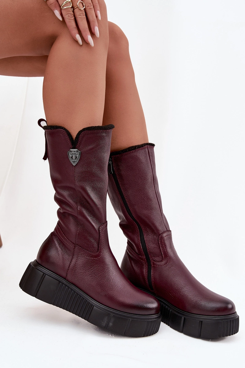 Damskie Skórzane Kozaki Z Wełną Zazoo 70121 Bordowe