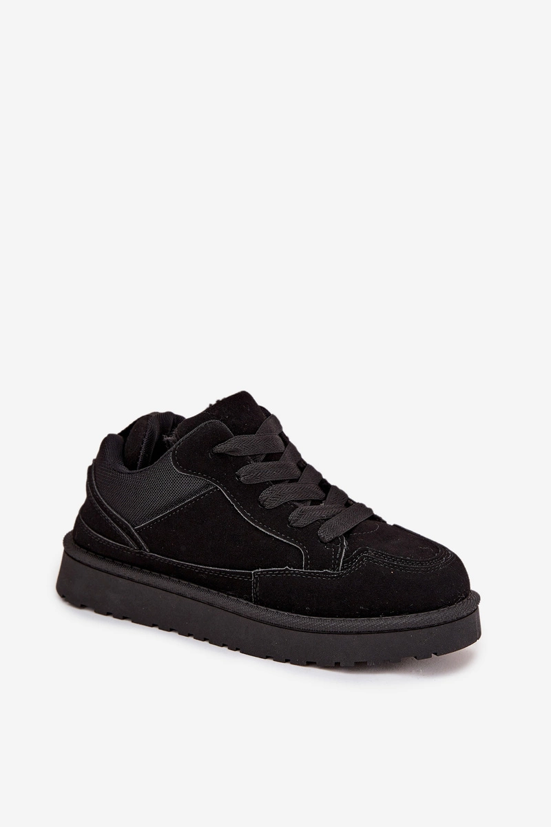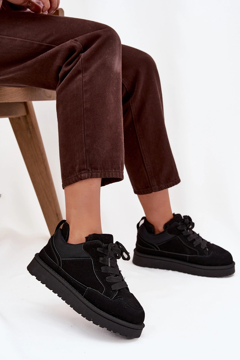 Sneakersy damskie wykonane z eko zamszu. Model został osadzony na podeszwie z gumowego tworzywa, która zapewnia dobrą przyczepność i stabilność podczas chodzenia. Sznurowane pozwala idealnie dopasować buty do stopy, a ocieplenie miękkim futerkiem gwarantuje ciepło i wygodę w chłodniejsze dni. To stylowe sneakersy, które doskonale sprawdzą się w codziennych stylizacjach – idealne do jeansów, legginsów i dresów. Model dostępny jest również w rozmiarach dziecięcych, dzięki czemu możesz stworzyć wyjątkowy, dopasowany zestaw mama + dziecko.