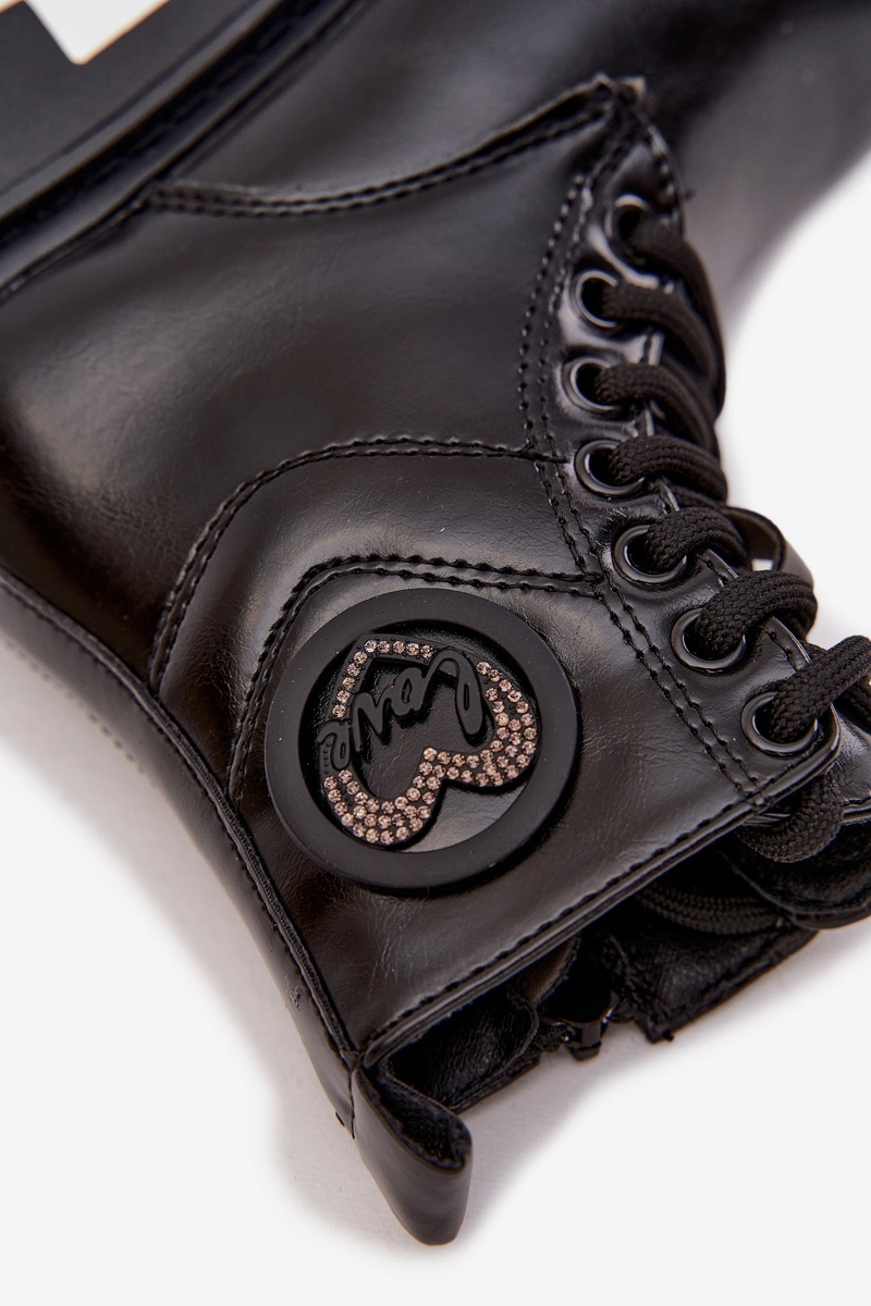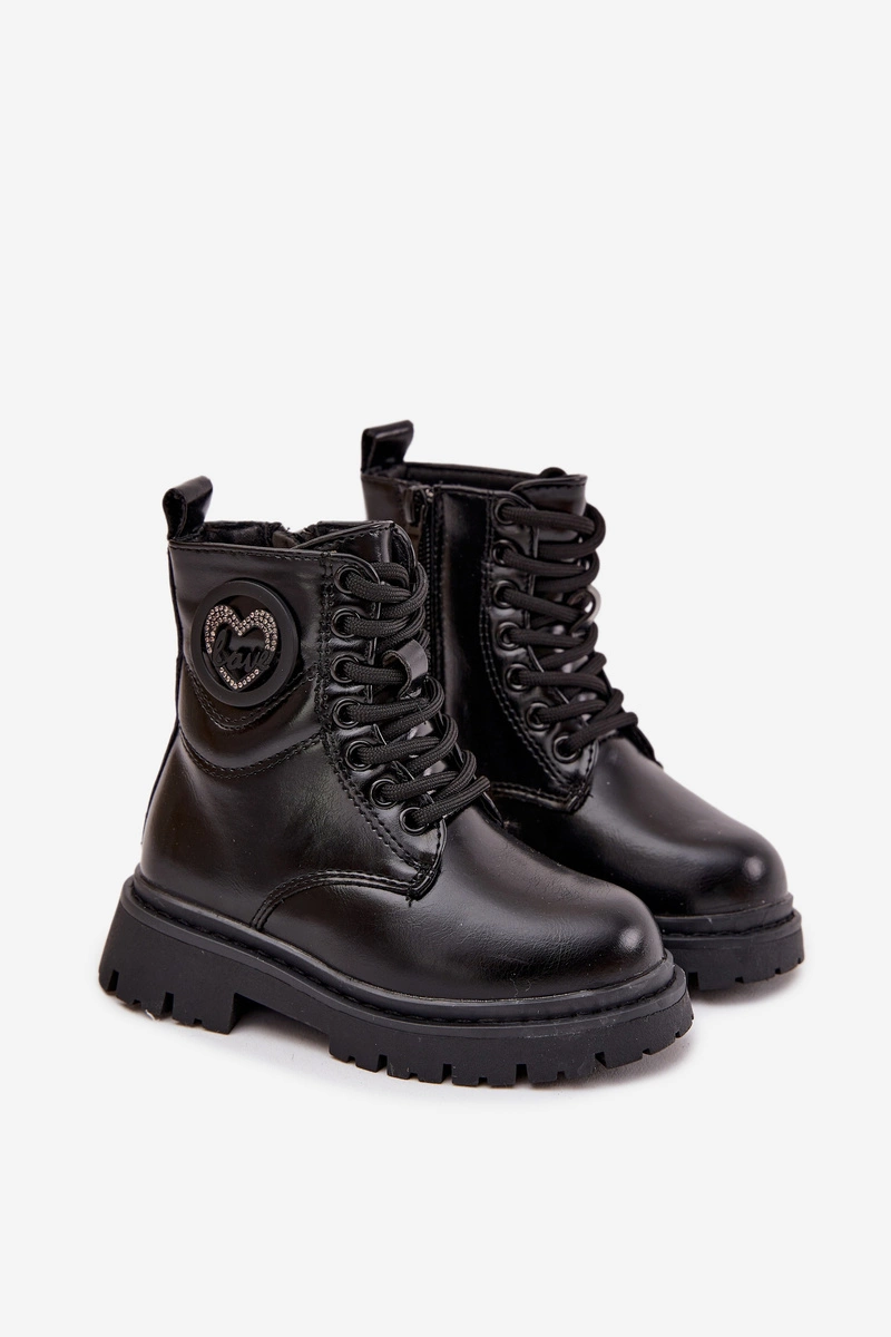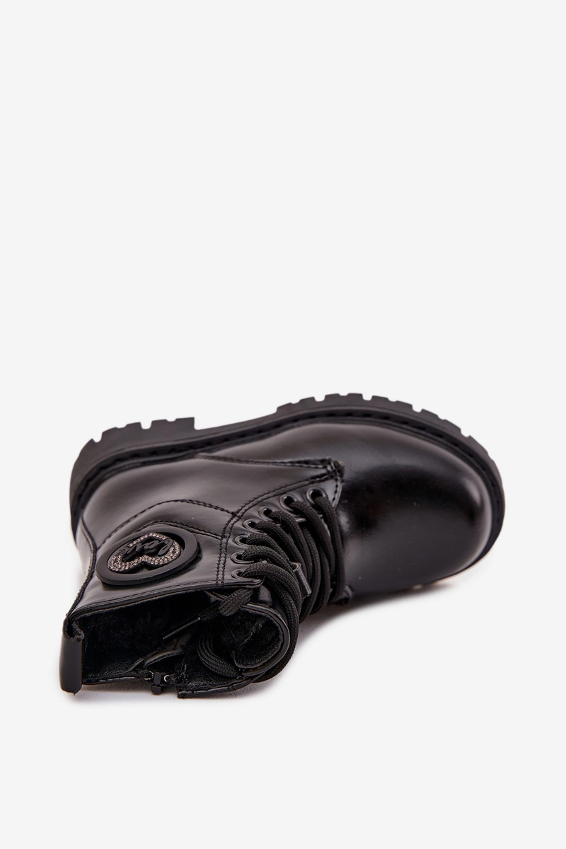 Botki Dziewczęce Ocieplane Futerkiem Z Ozdobą LOVE Czarne Rosaira