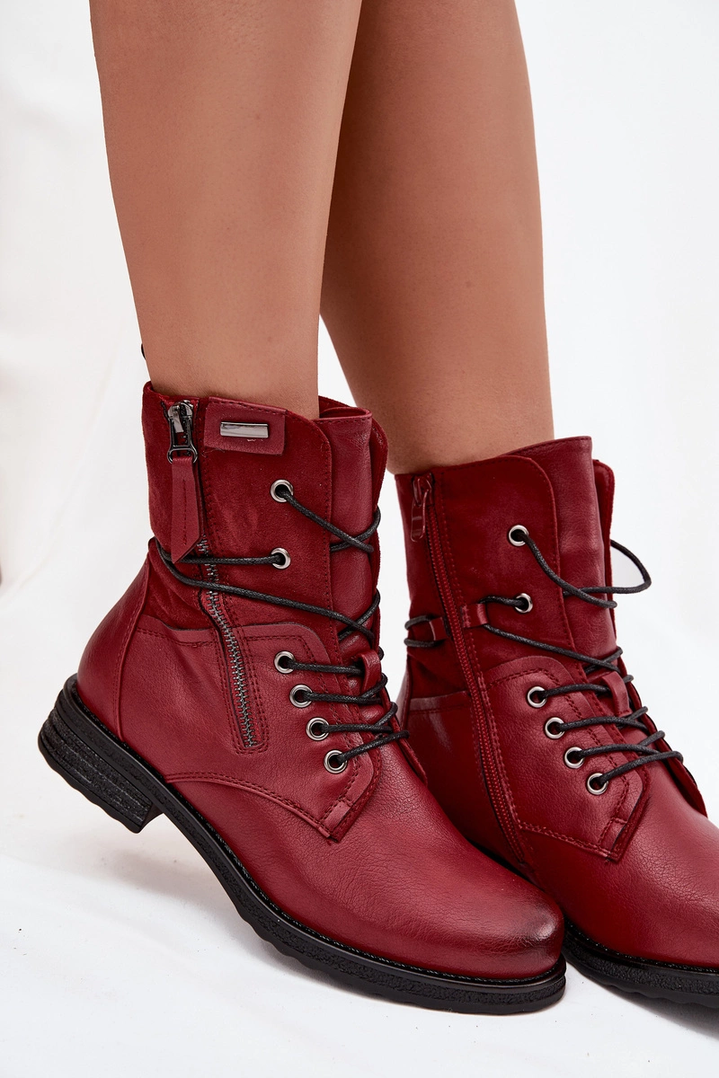 Damskie botki na płaskim obcasie to połączenie stylu i wygody, idealne na chłodniejsze dni. Posiadają zaokrąglone noski oraz podwójne zapięcie – na zamek i sznurowanie – zapewniają łatwość zakładania i idealne dopasowanie do stopy. Wnętrze ocieplone kocem obuwniczym gwarantuje ciepło i komfort, dzięki czemu sprawdzą się doskonale w codziennych stylizacjach. Przy wyborze rozmiaru prosimy sugerować się tabelą rozmiarów.