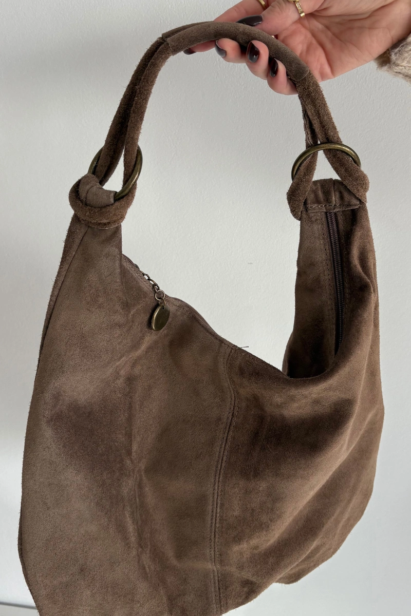 Torebka Z Naturalnego Zamszu Ciemnobeżowa Floriah