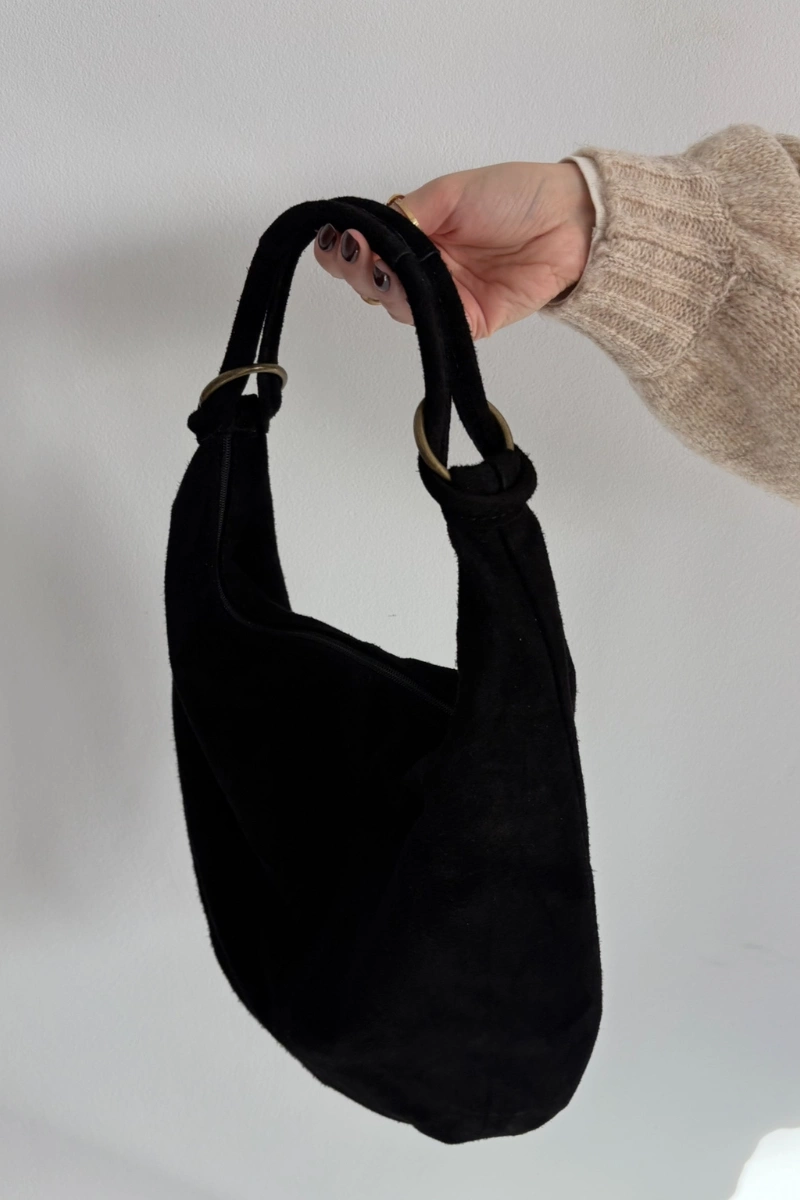 Torebka Z Naturalnego Zamszu Czarna Floriah