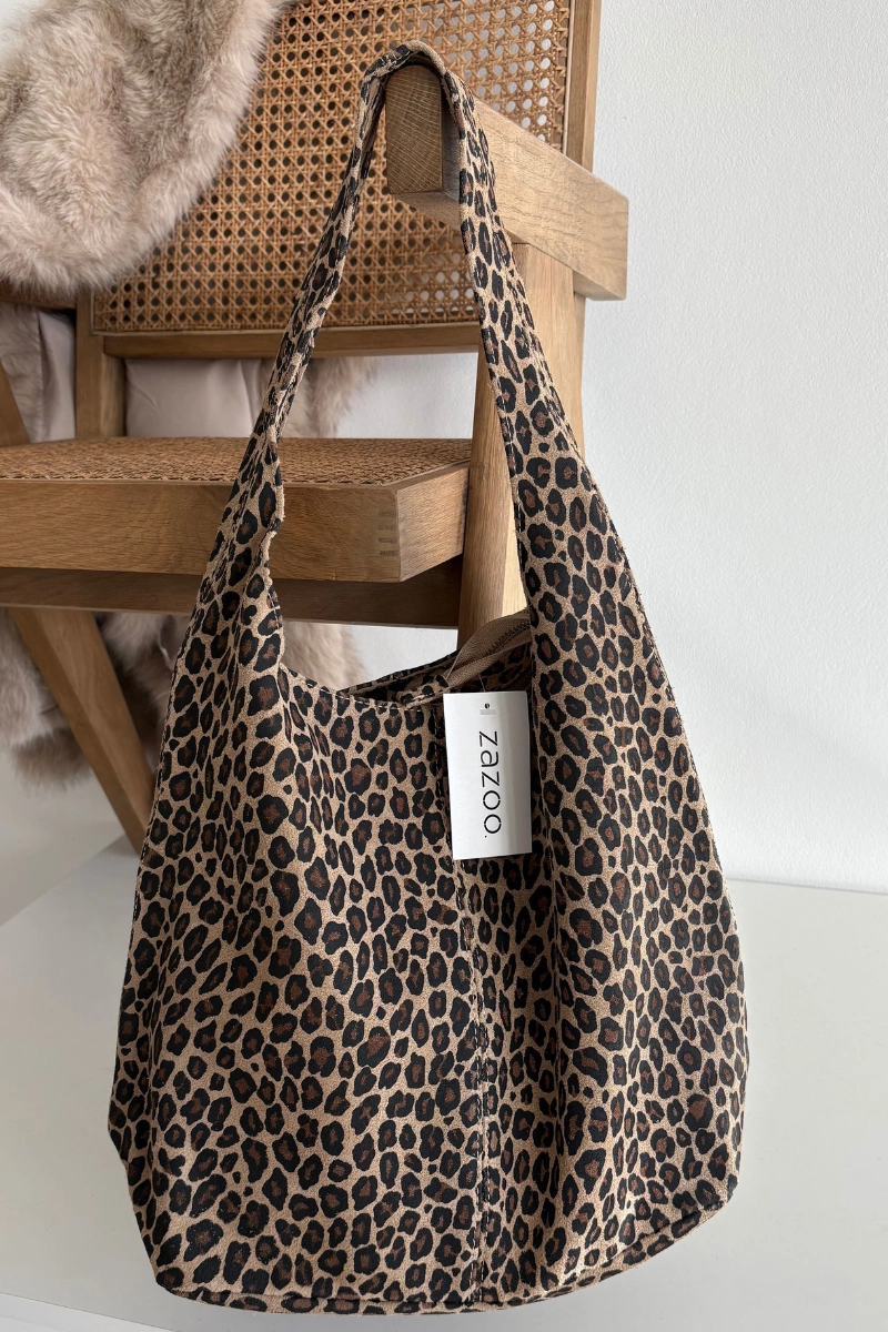 Torebka typu shopper wykonana z naturalnego zamszu. Modny wzór w panterkę nadaje jej charakteru i przyciąga uwagę, czyniąc z niej efektowny dodatek do codziennych stylizacji. Model zapinany na zamek zapewnia bezpieczeństwo przechowywanych rzeczy, a przestronne wnętrze pomieści wszystko, co niezbędne na co dzień. Torebka bez paska, z wygodnymi uchwytami, świetnie sprawdzi się zarówno do pracy, na zakupy, jak i na spotkania w mieście.
