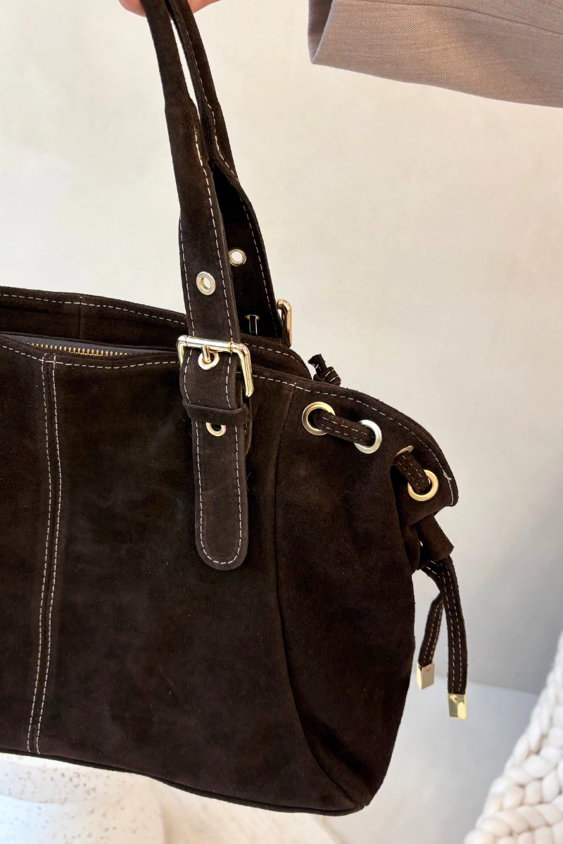 Skórzana Zamszowa Torebka Czekoladowa Ovelia
