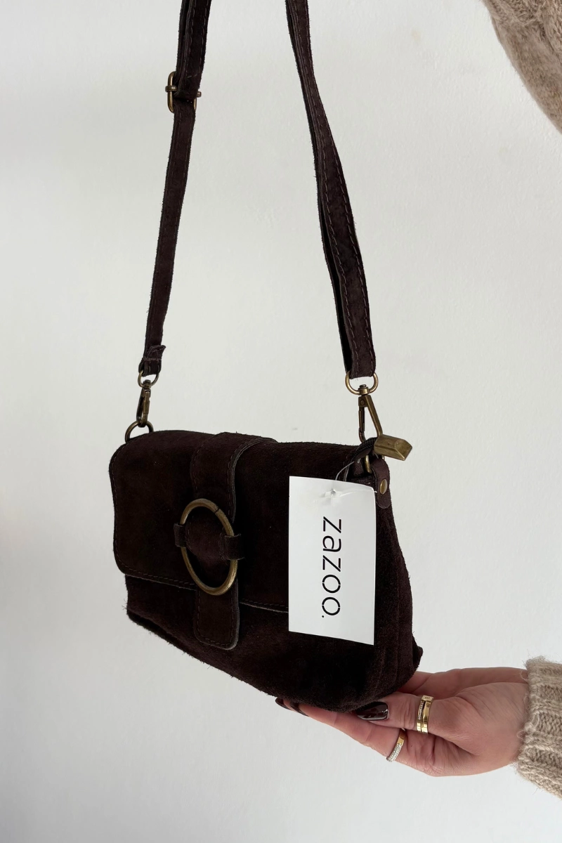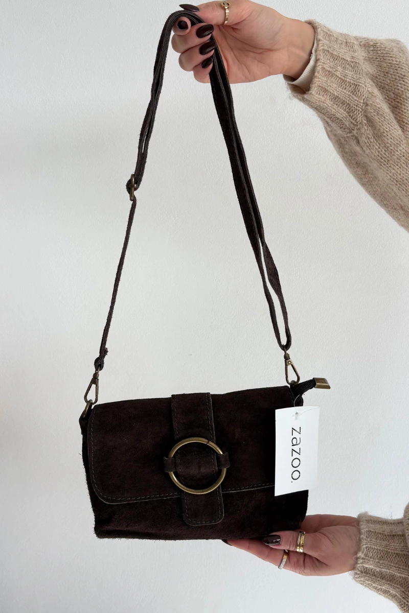 Skórzana Zamszowa Mała Torebka Czekoladowa Jessel