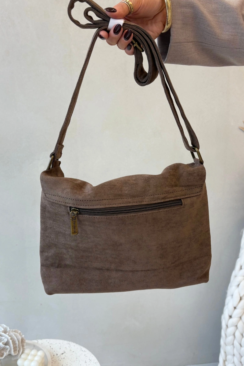Torebka Listonoszka Z Eko Zamszu Ciemnobeżowa Carenza