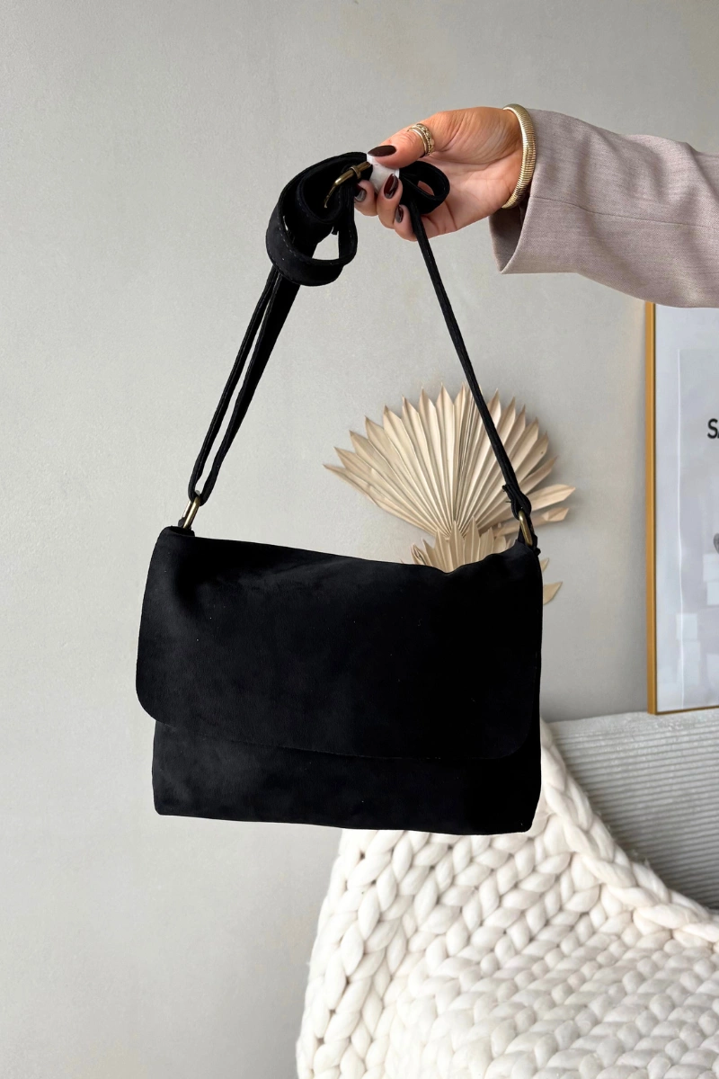 Torebka Listonoszka Z Eko Zamszu Czarna Carenza